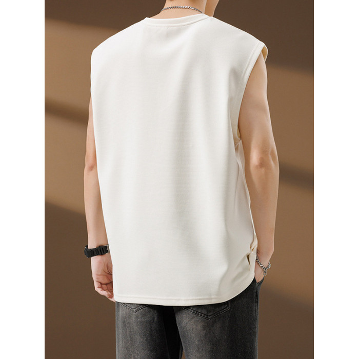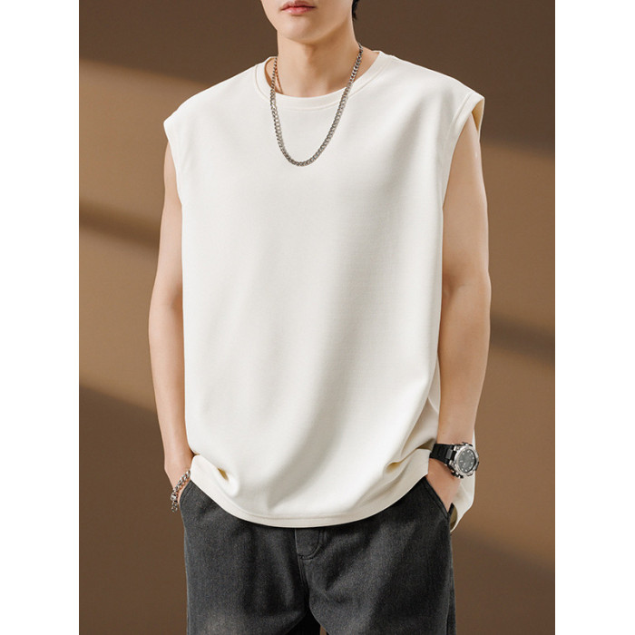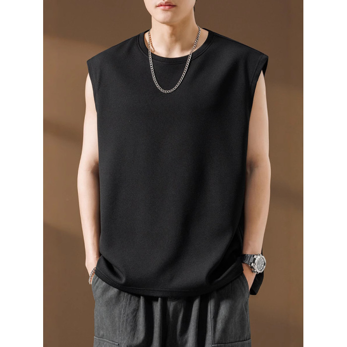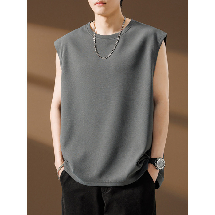 夏季冰絲背心男薄款寬松運動健身坎肩純色大碼寬松休閒無袖t恤潮