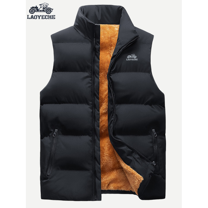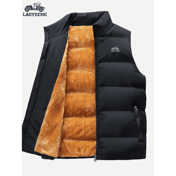 老爺車高級加絨馬甲男冬季中年時尚百搭寬松大碼坎肩外套保暖加厚