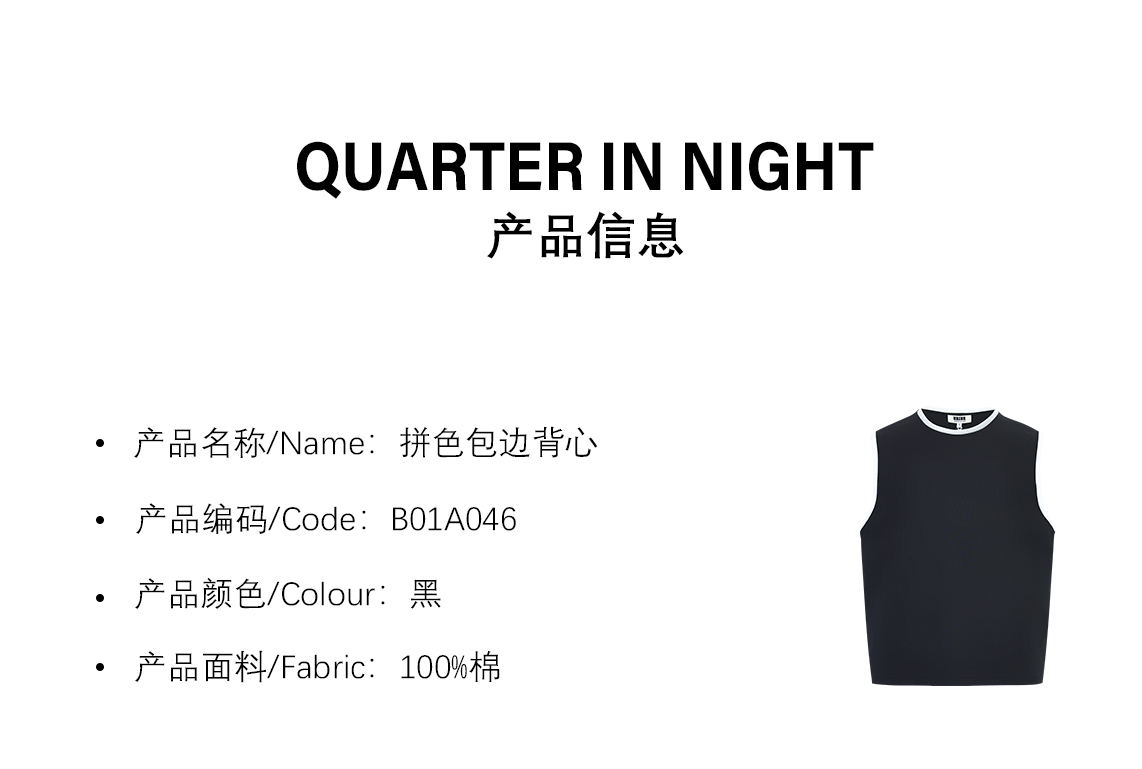QUARTER IN NIGHT2025夏季新款拼色包邊背心