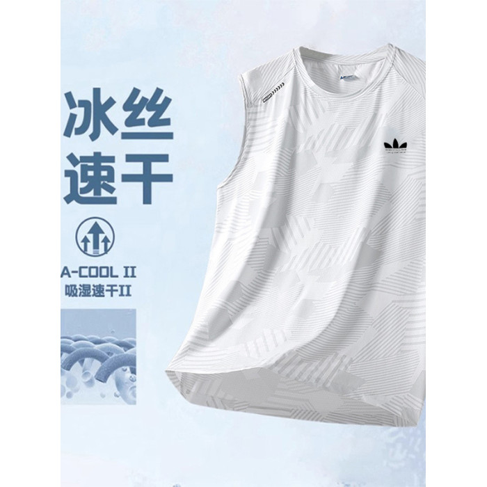 貴族三葉草夏冰絲男士坎肩背心透氣T恤寬松速乾夏季運動無袖上衣