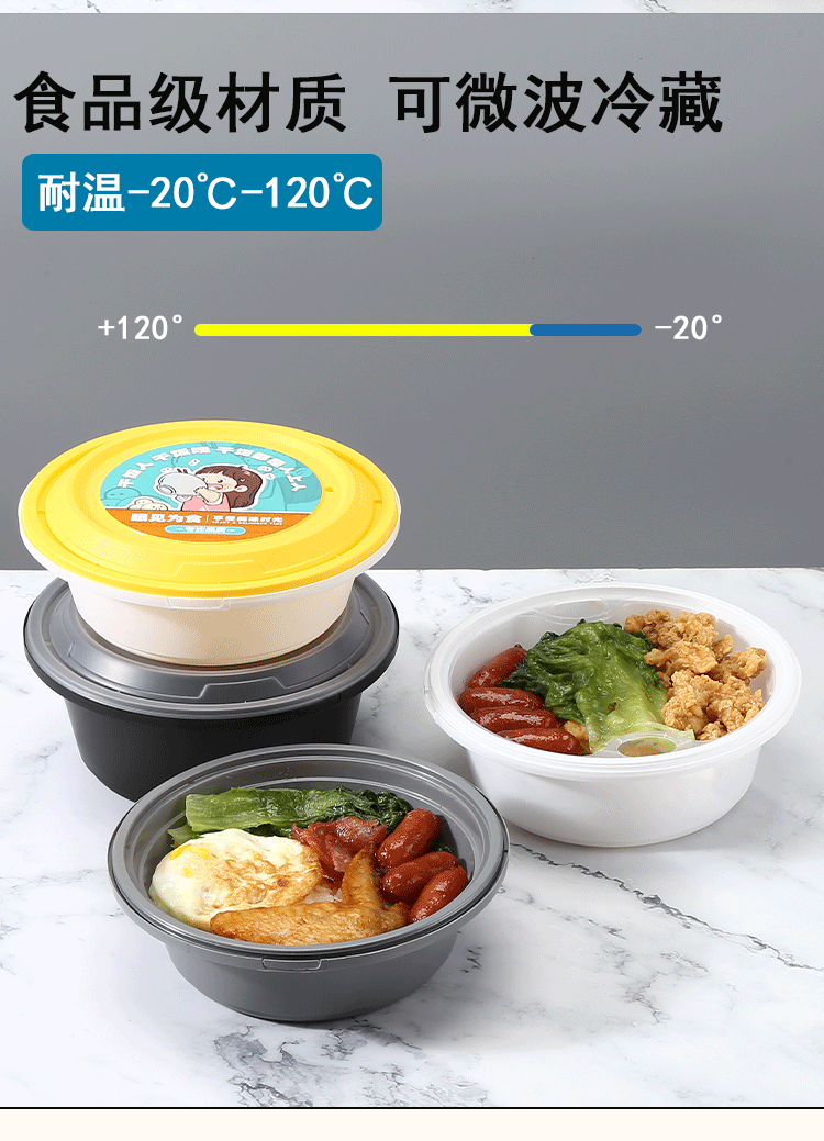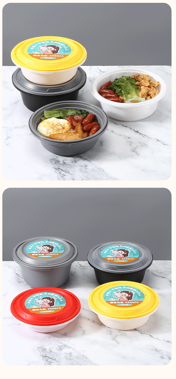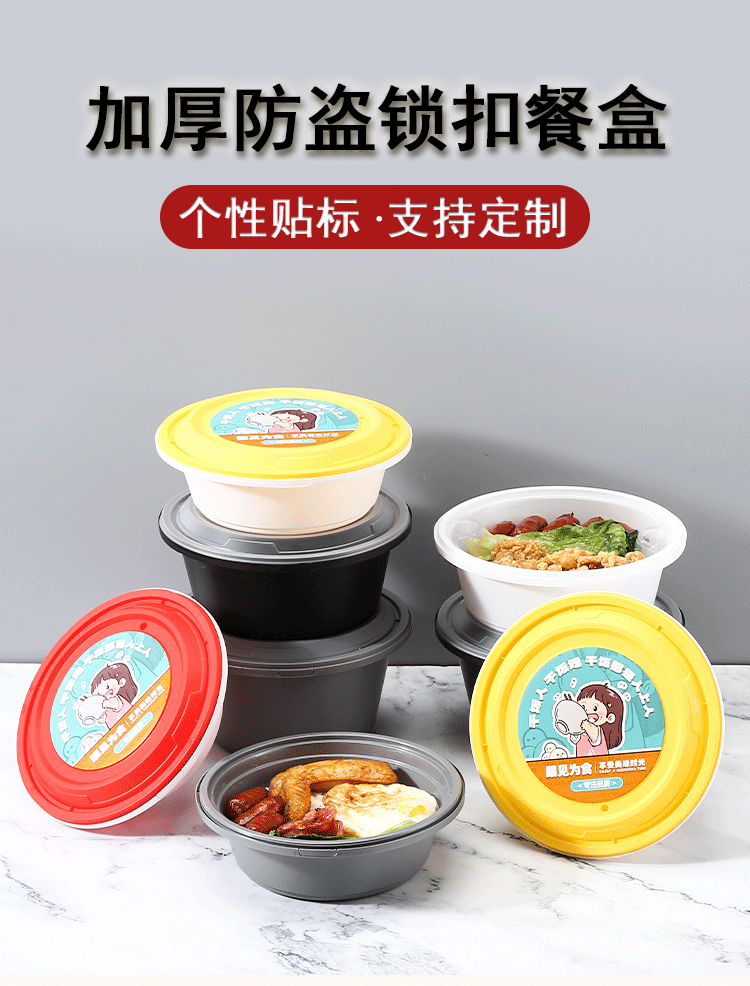 一次性防盜鎖扣餐盒1000ml麻辣燙圓形加厚打包盒帶蓋外賣便當飯盒