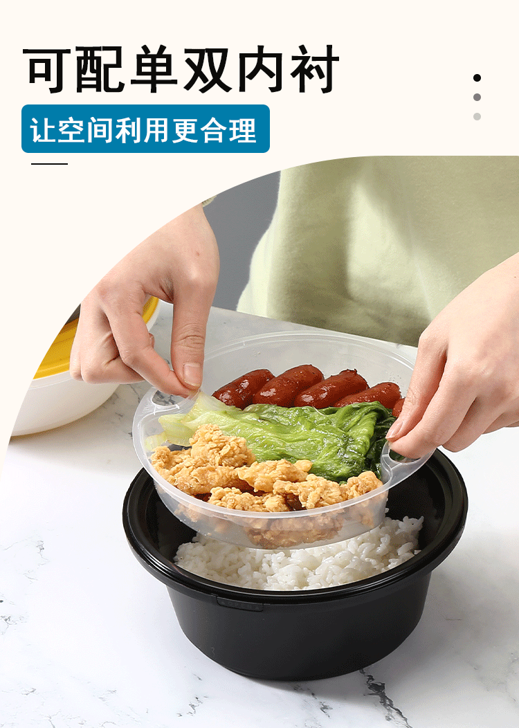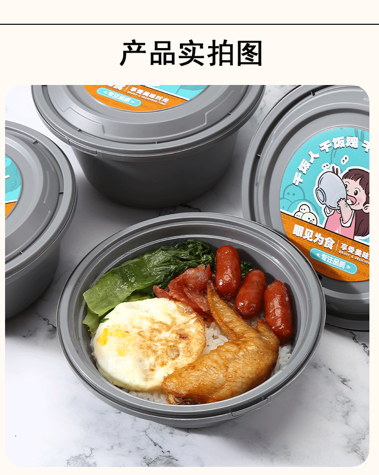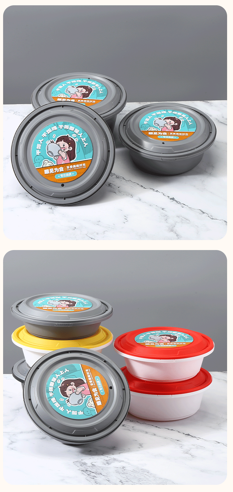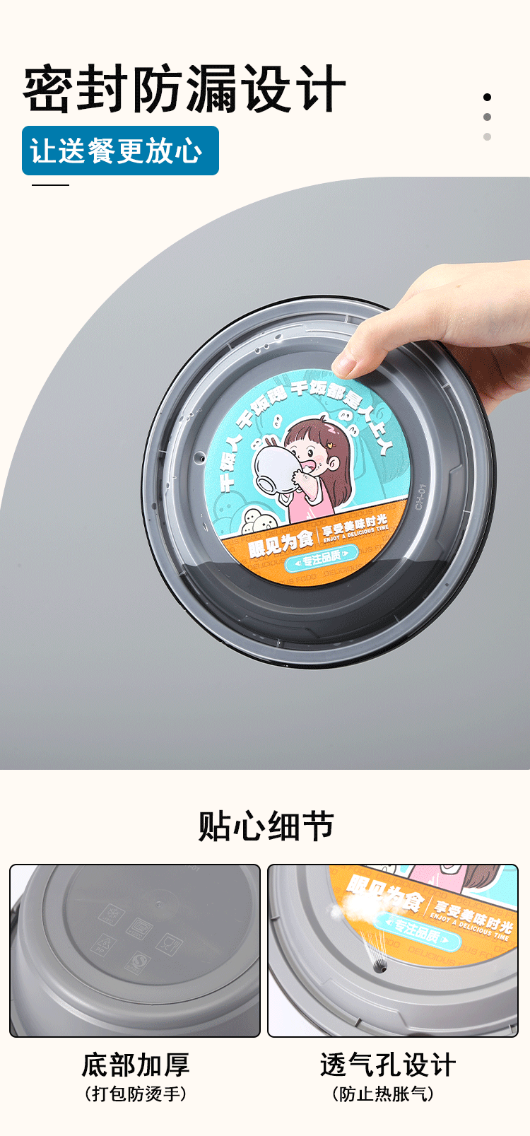 一次性防盜鎖扣餐盒1000ml麻辣燙圓形加厚打包盒帶蓋外賣便當飯盒