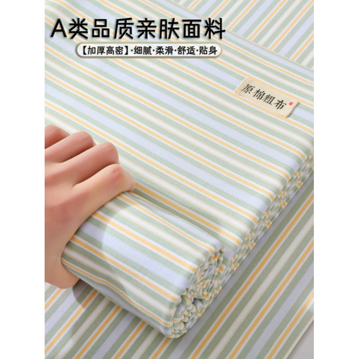 純全棉加厚老粗布床單件夏季涼蓆學生宿舍雙人帆布格條三件套裸睡