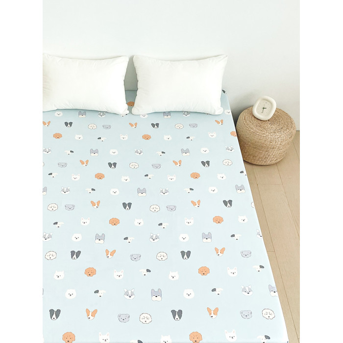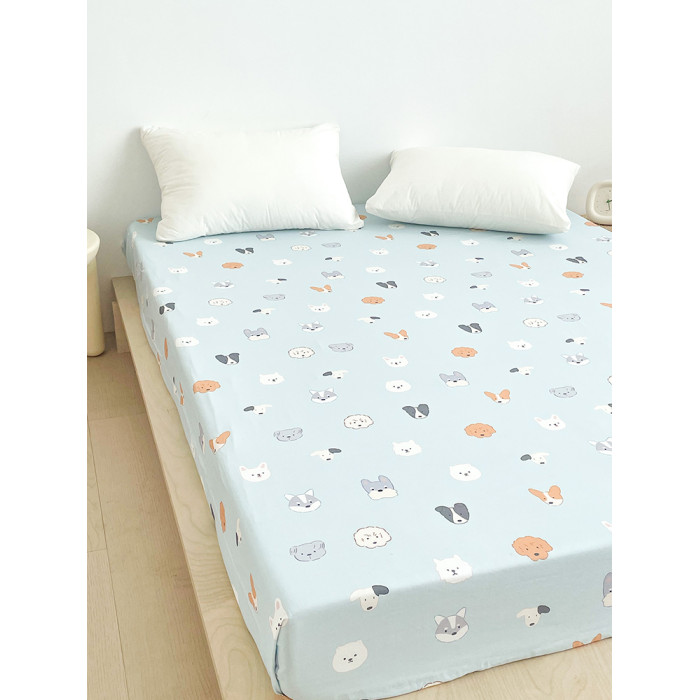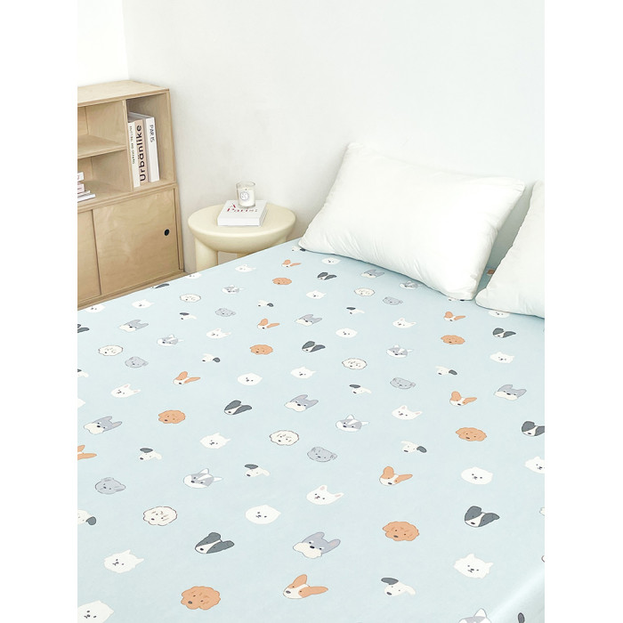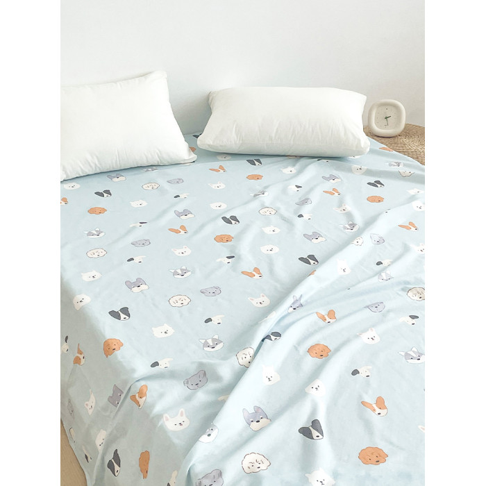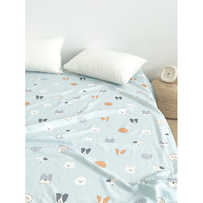 小狗電台 可愛藍色雙層紗床單床笠原創小狗a類新疆棉1.2米1.5米床