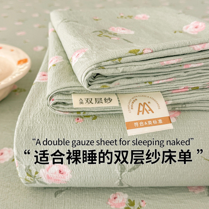 A類母嬰級雙層紗床單單件單人床單雙人床單三件套四季通用款床單