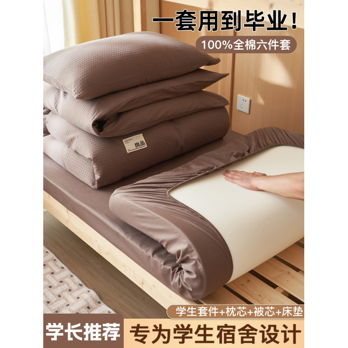 秋冬【0.9床六件套】(0.9床笠款三件套+枕芯+5斤大豆被+5cm床墊)