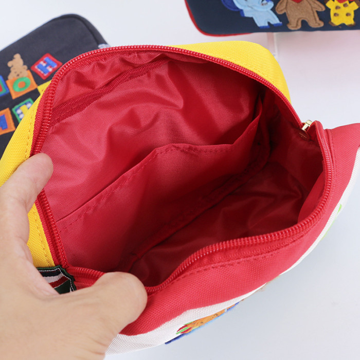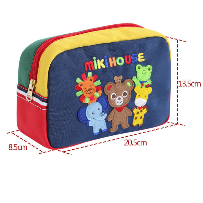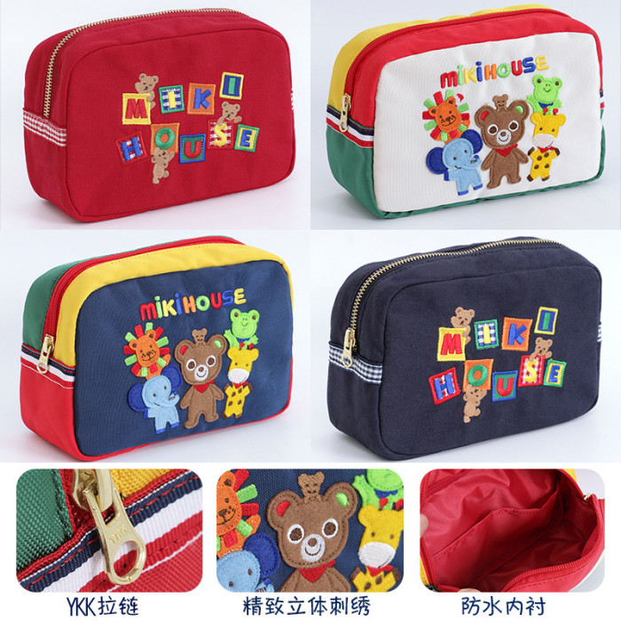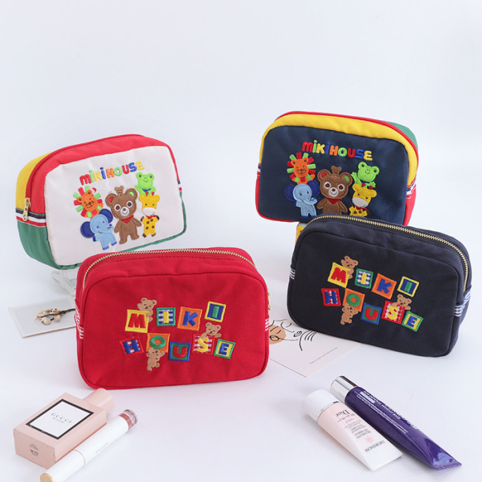 miki日系手拿化妝包卡通彩色字母格子熊動物園刺綉帆布包收納包