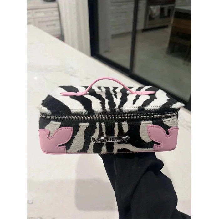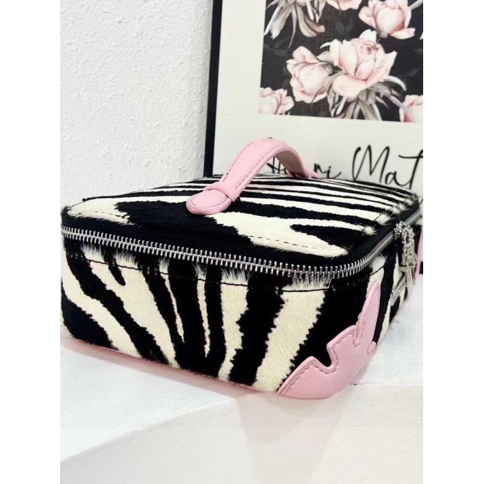 高級感網紅同款斑馬紋真皮馬毛洗漱化妝包大容量可攜式手提首飾包