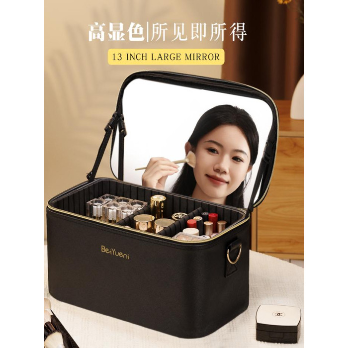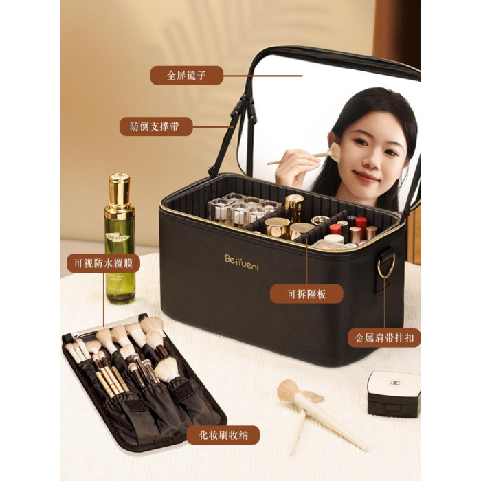 化妝包大容量可攜式外出帶鏡化妝箱專業跟妝師手提旅行收納包貝約妮