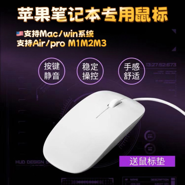 適用蘋果筆電macbook air pro電腦滑鼠有線靜音一體機M1M2通用