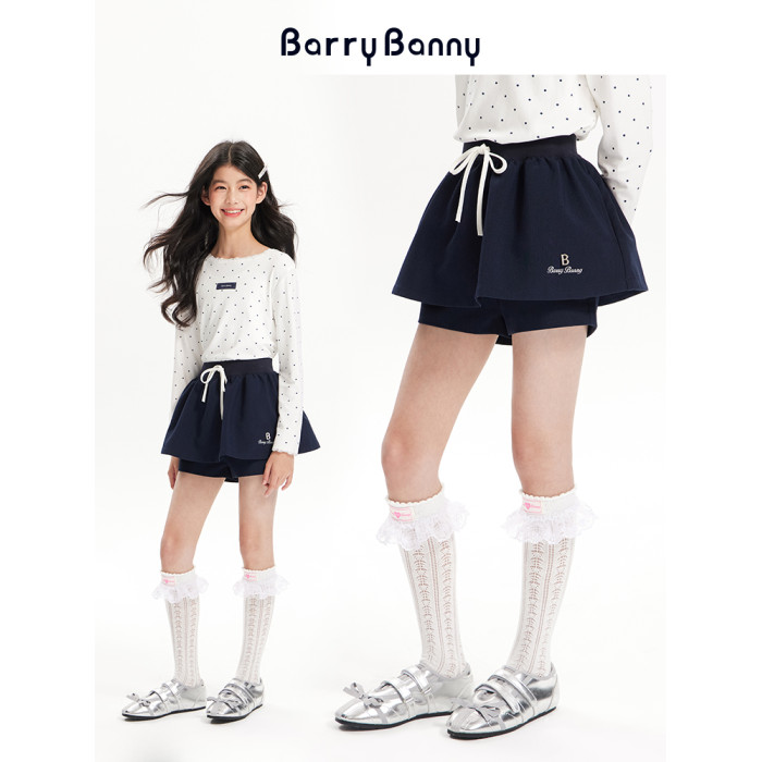 BarryBanny女童花苞褲裙2025新款夏季復古芭蕾裙兒童假兩件半身裙