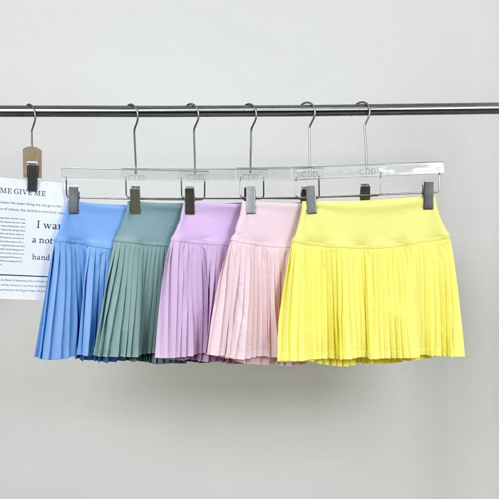 涼感網球裙帶安全褲彈力時尚百褶裙女雙層防走光三分運動褲半身裙