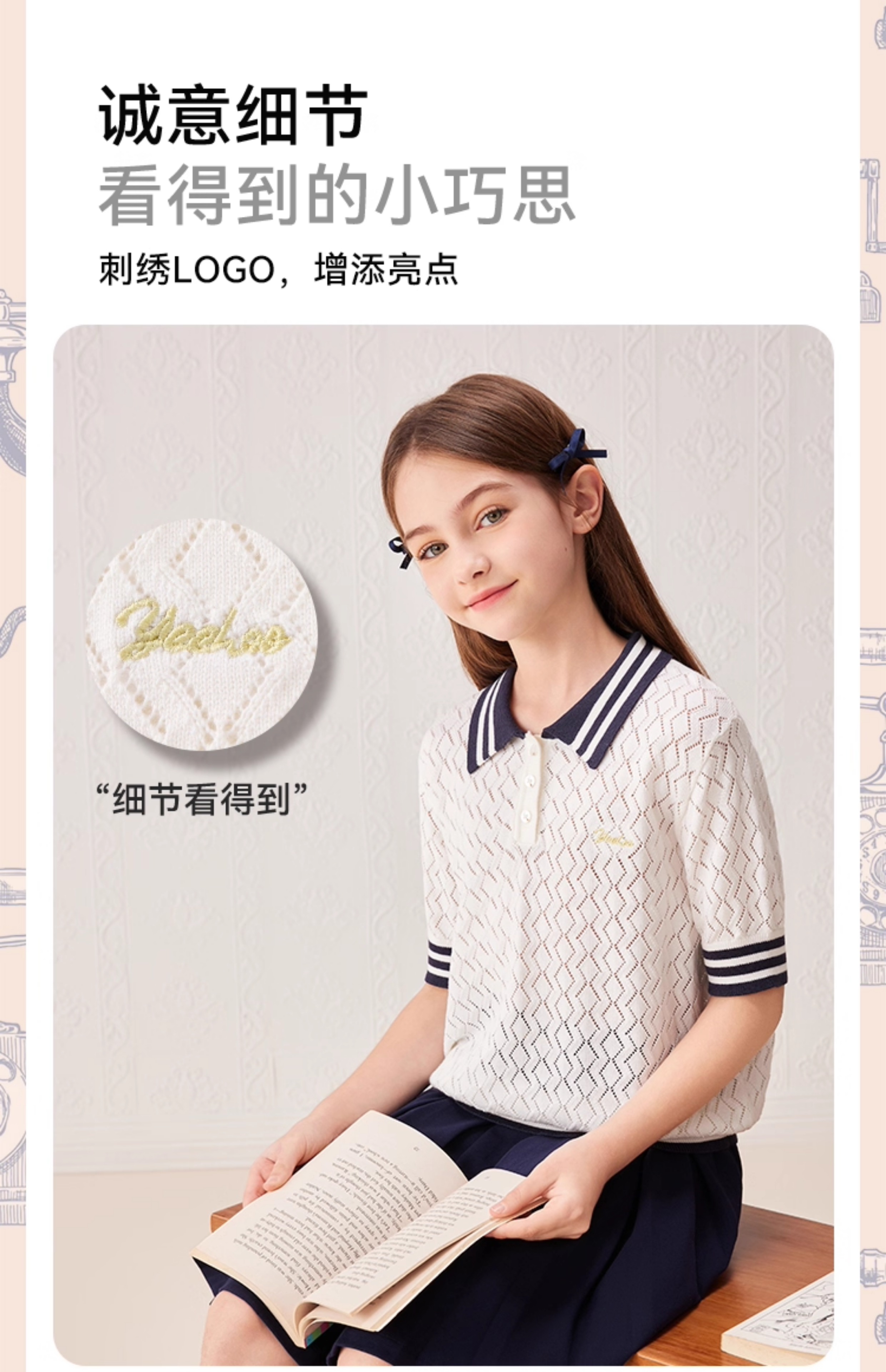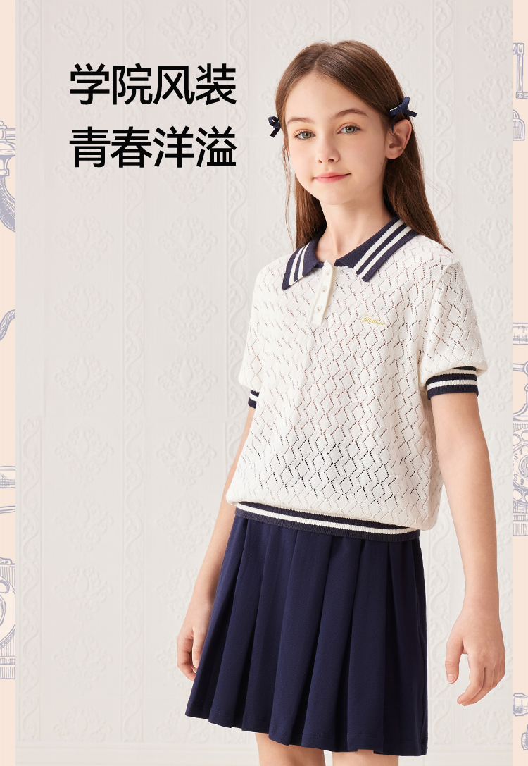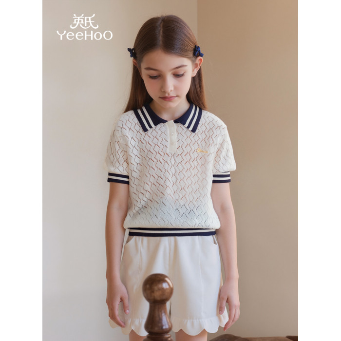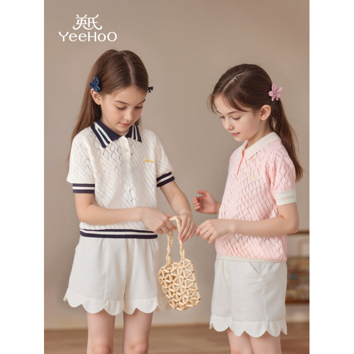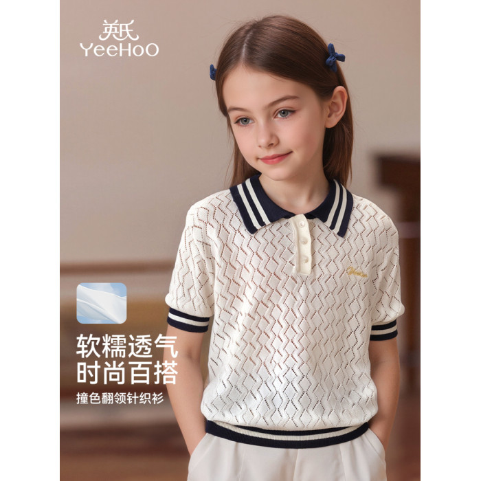 英氏女童短袖polo衫2025夏季新款兒童翻領針織T恤中大童女孩上衣