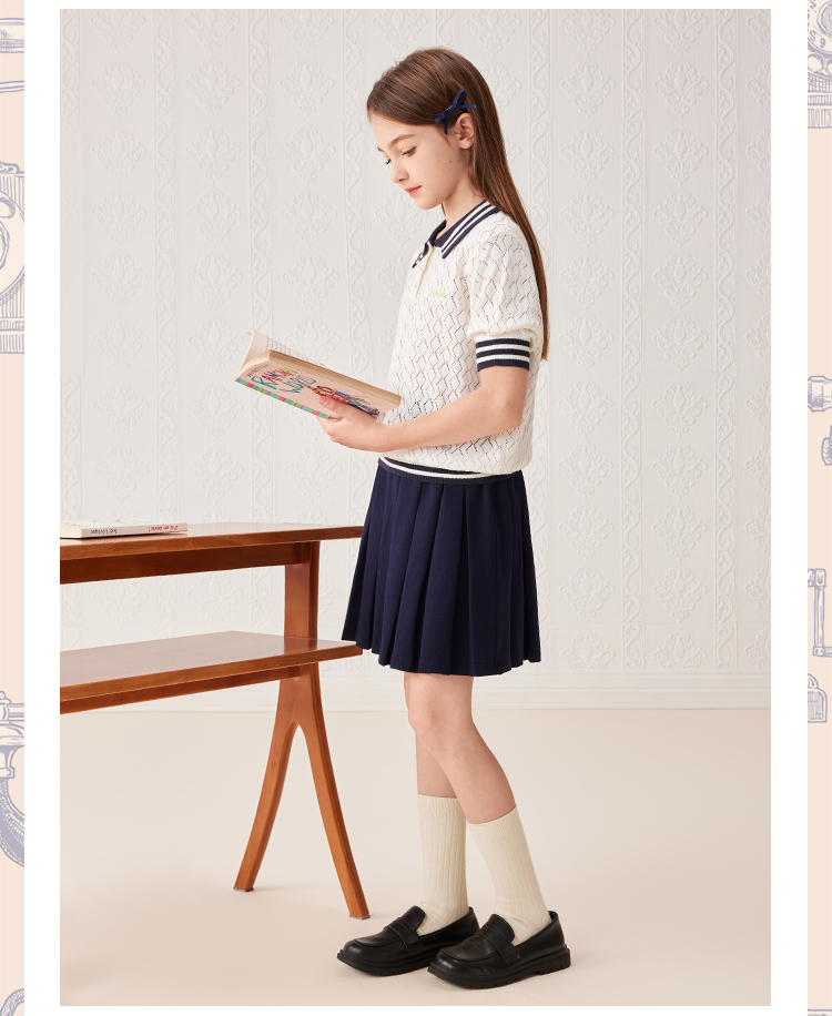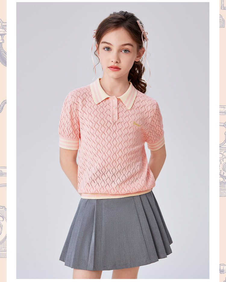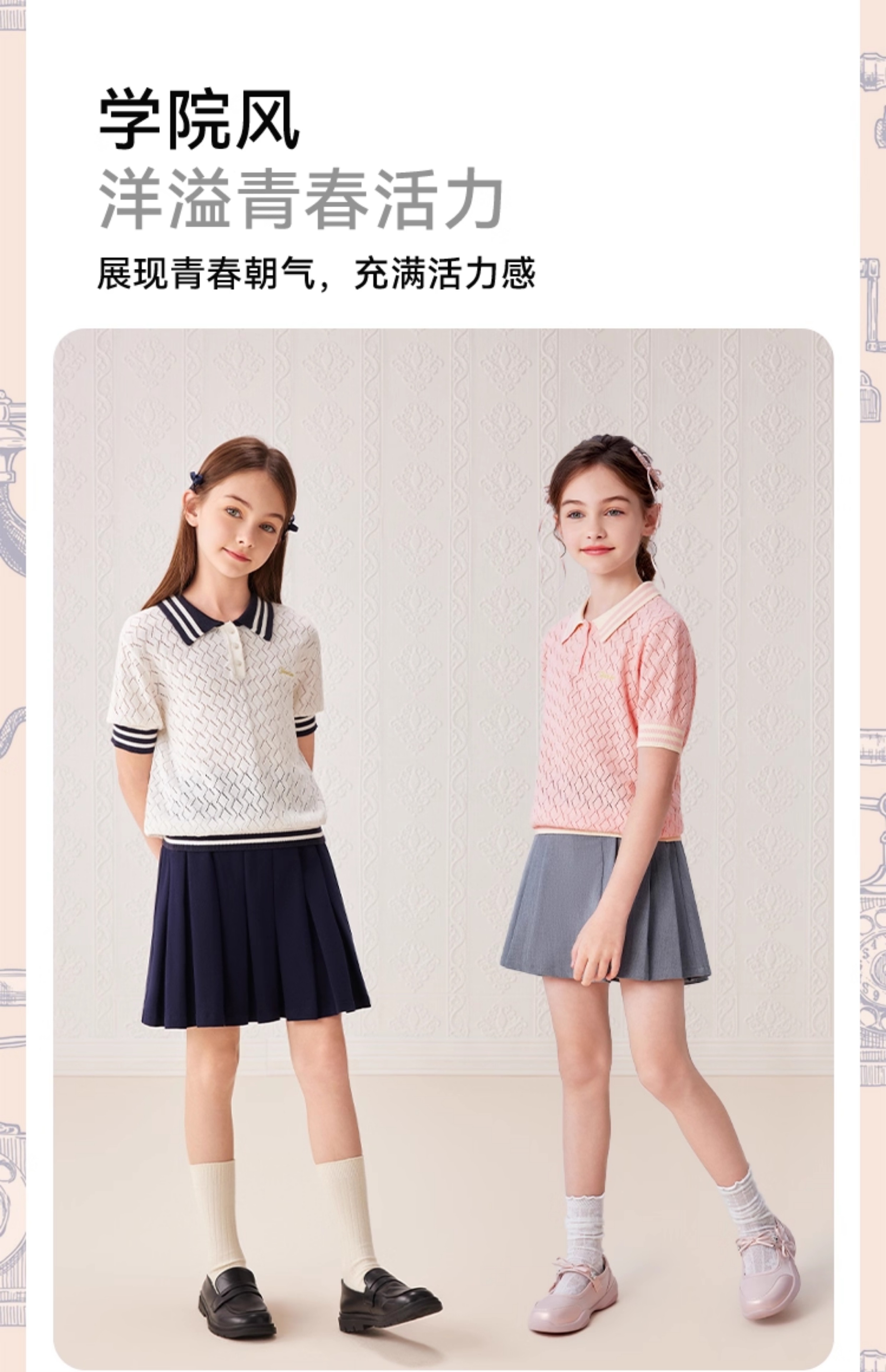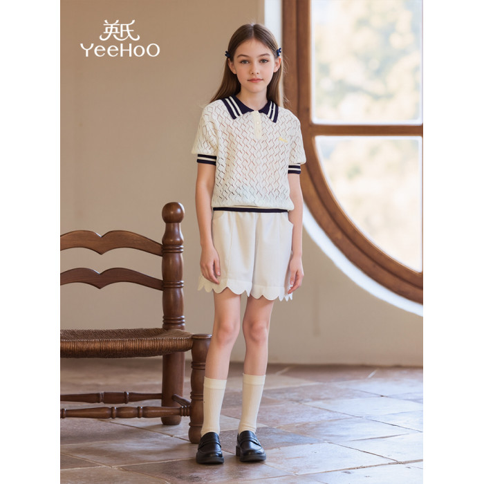 英氏女童短袖polo衫2025夏季新款兒童翻領針織T恤中大童女孩上衣