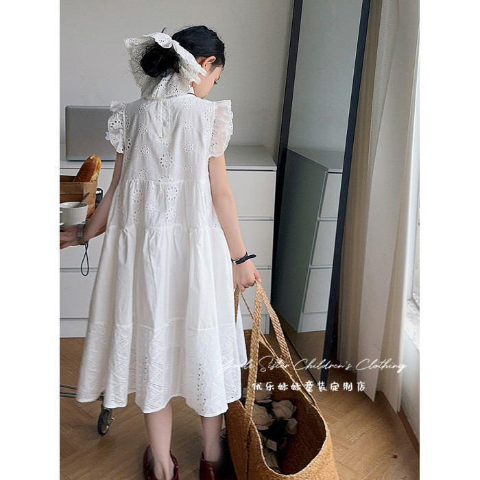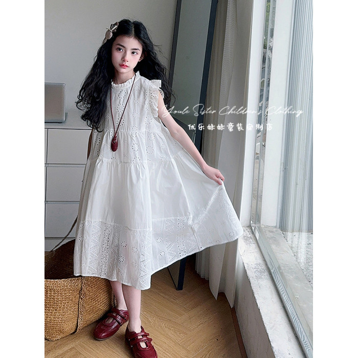 女童夏季連衣裙2025新款兒童洋氣純棉公主裙女大童時髦白色裙子潮