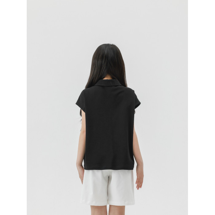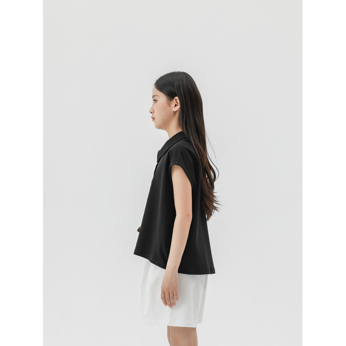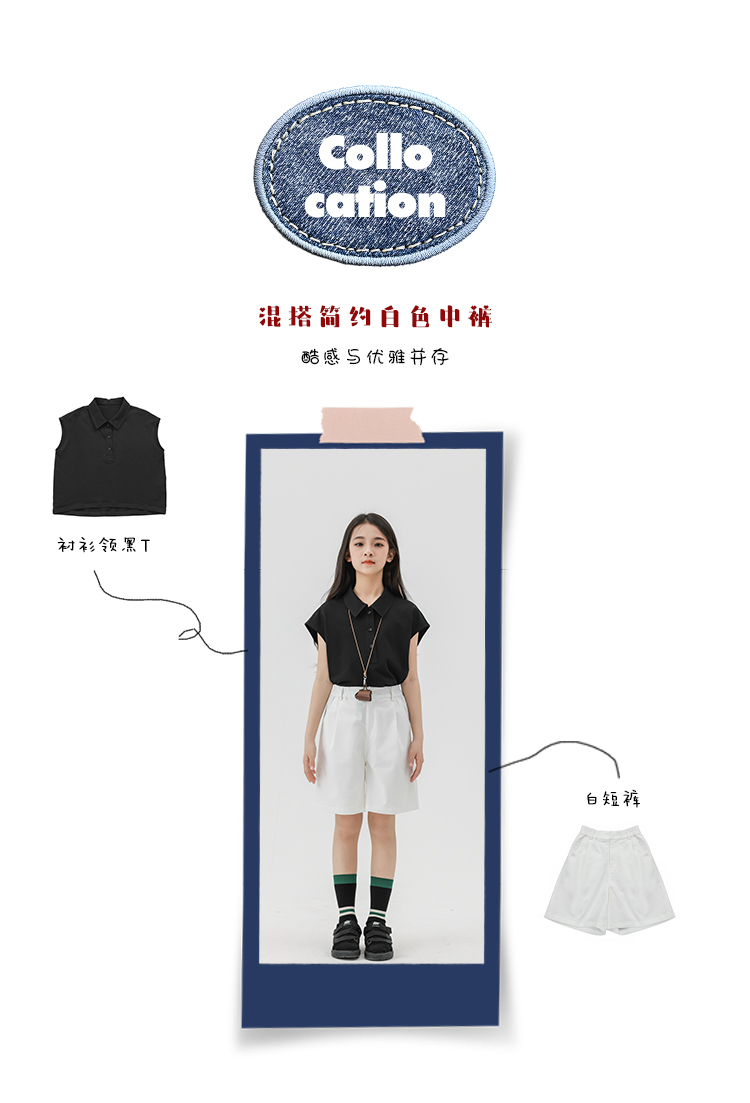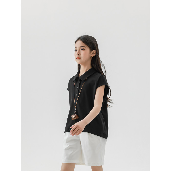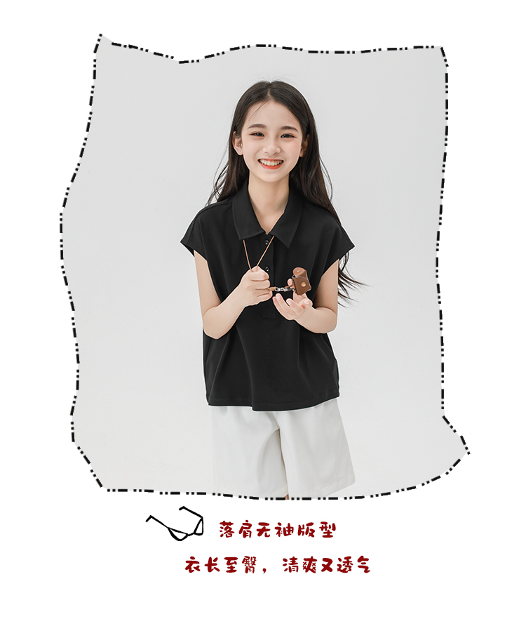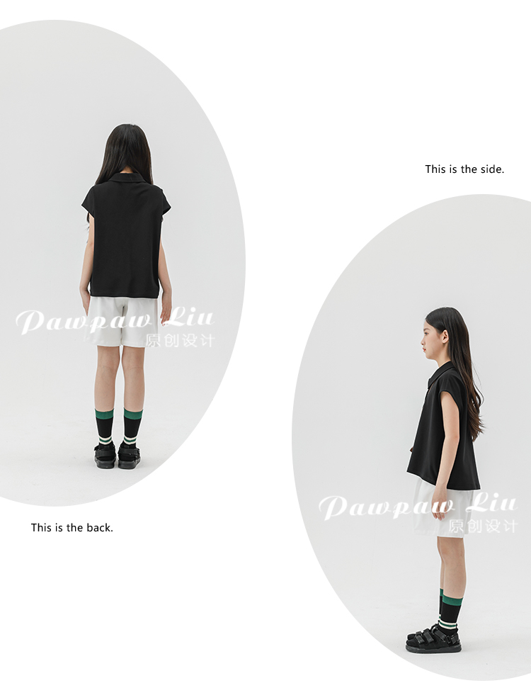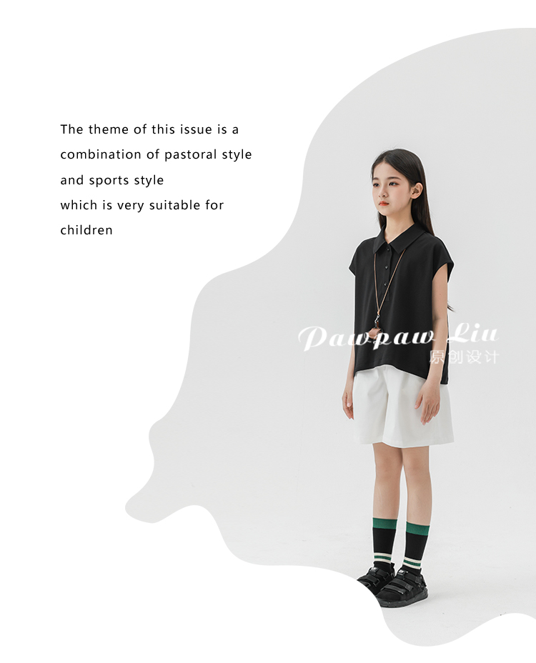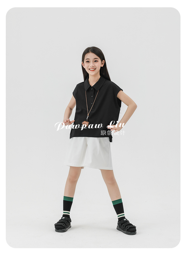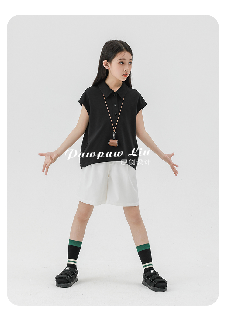 Pawpaw liu原創設計女童短袖t恤2025夏季新款兒童氣質黑色polo衫