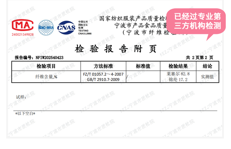 材質成分 | 萊賽爾纖維(萊賽爾)82.8% 聚醯胺纖維(錦綸)17.2% |