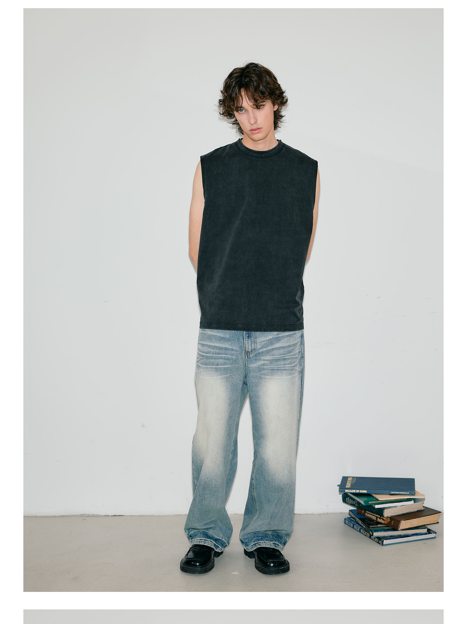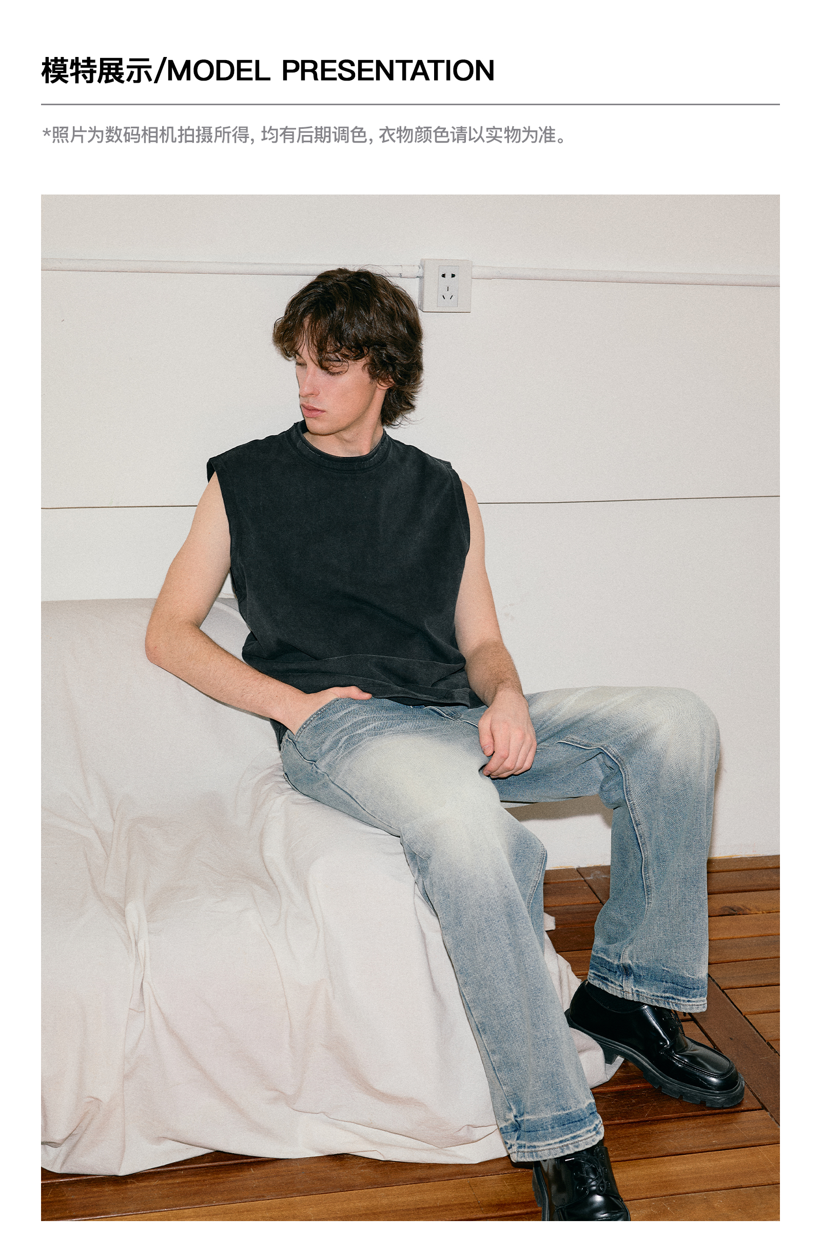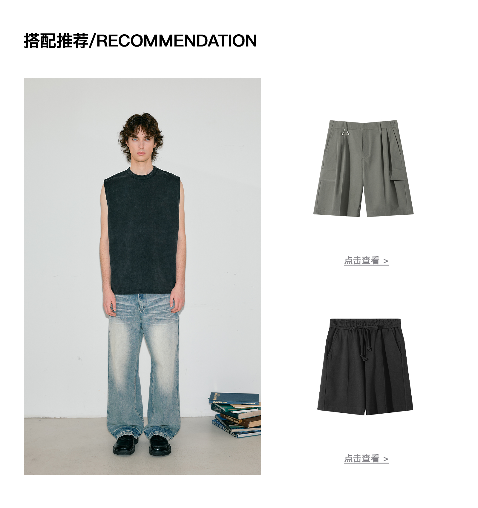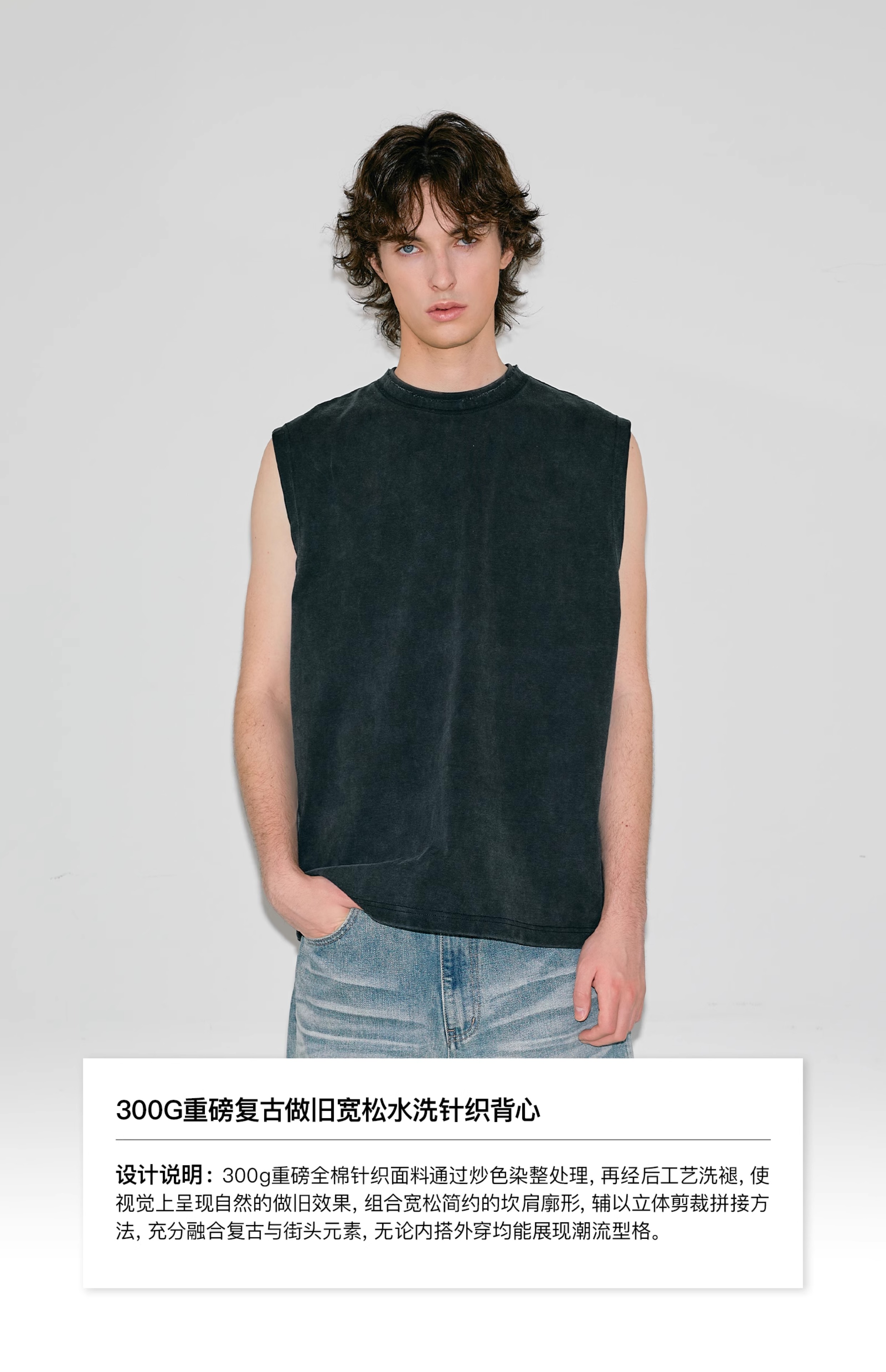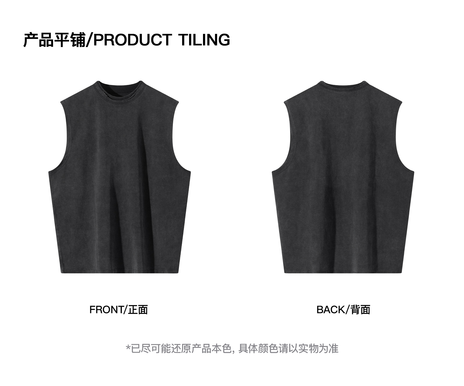 Costful Ro活性炒色全棉針織坎肩背心 雙層毛邊領300g重磅短袖T恤