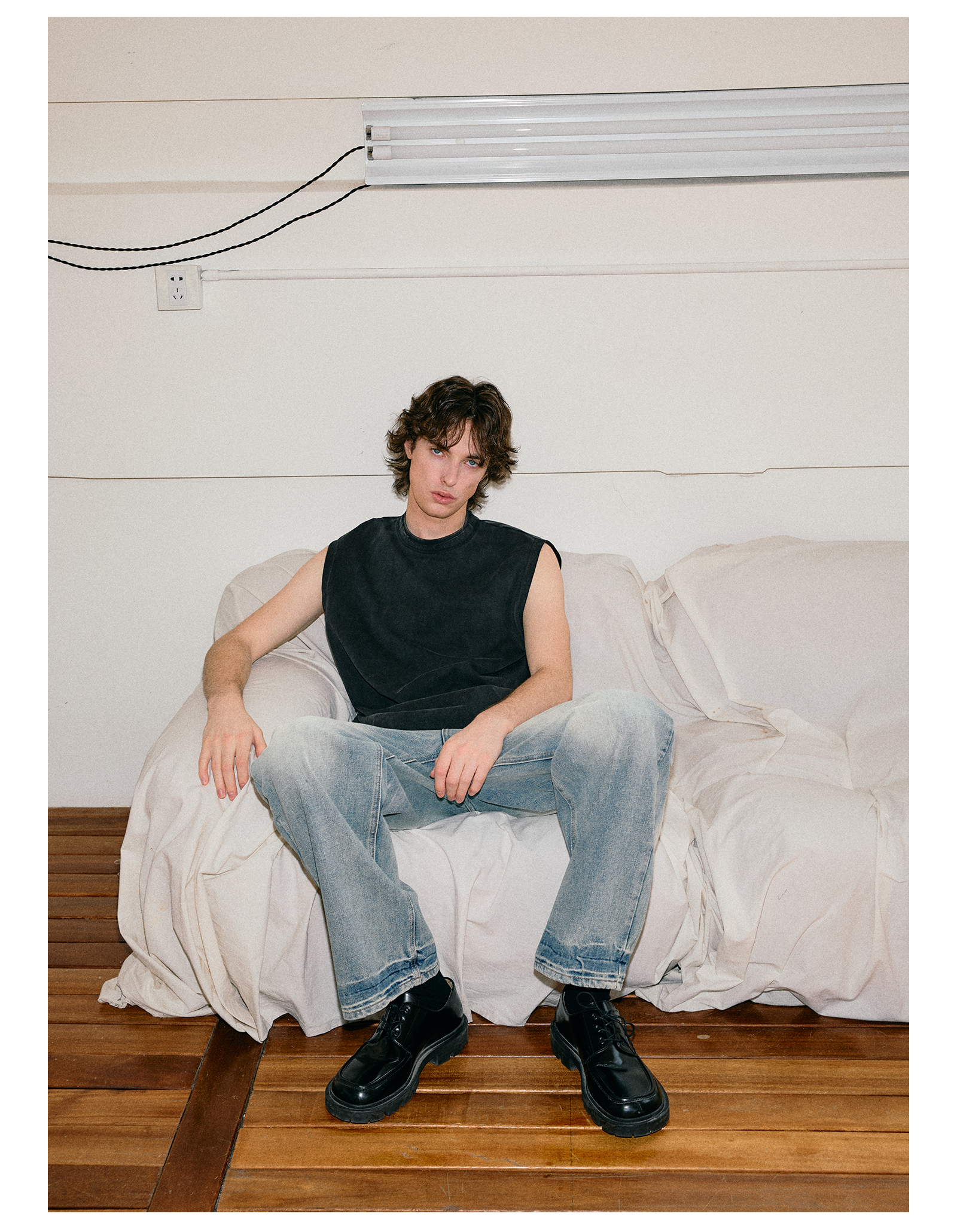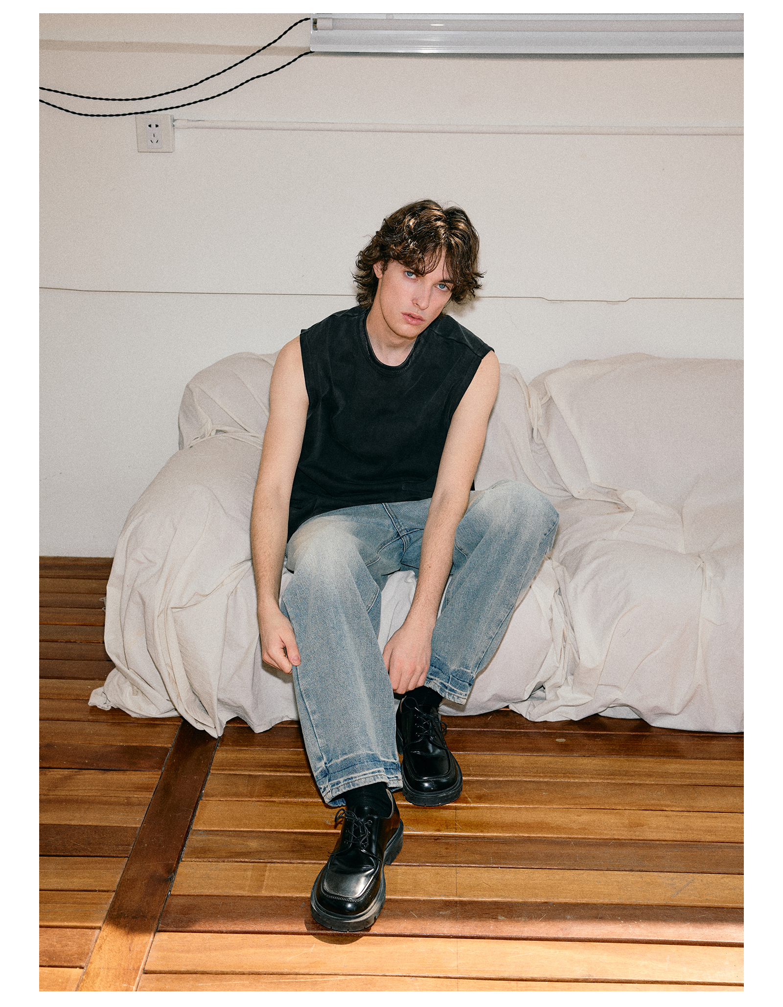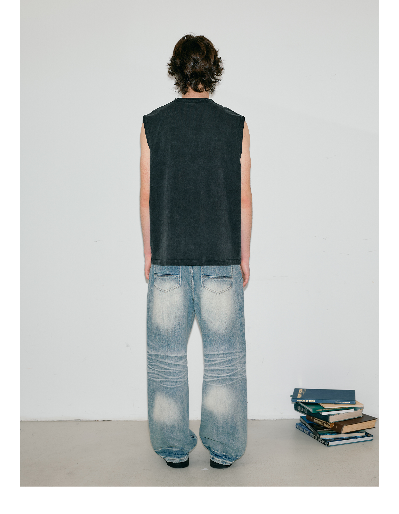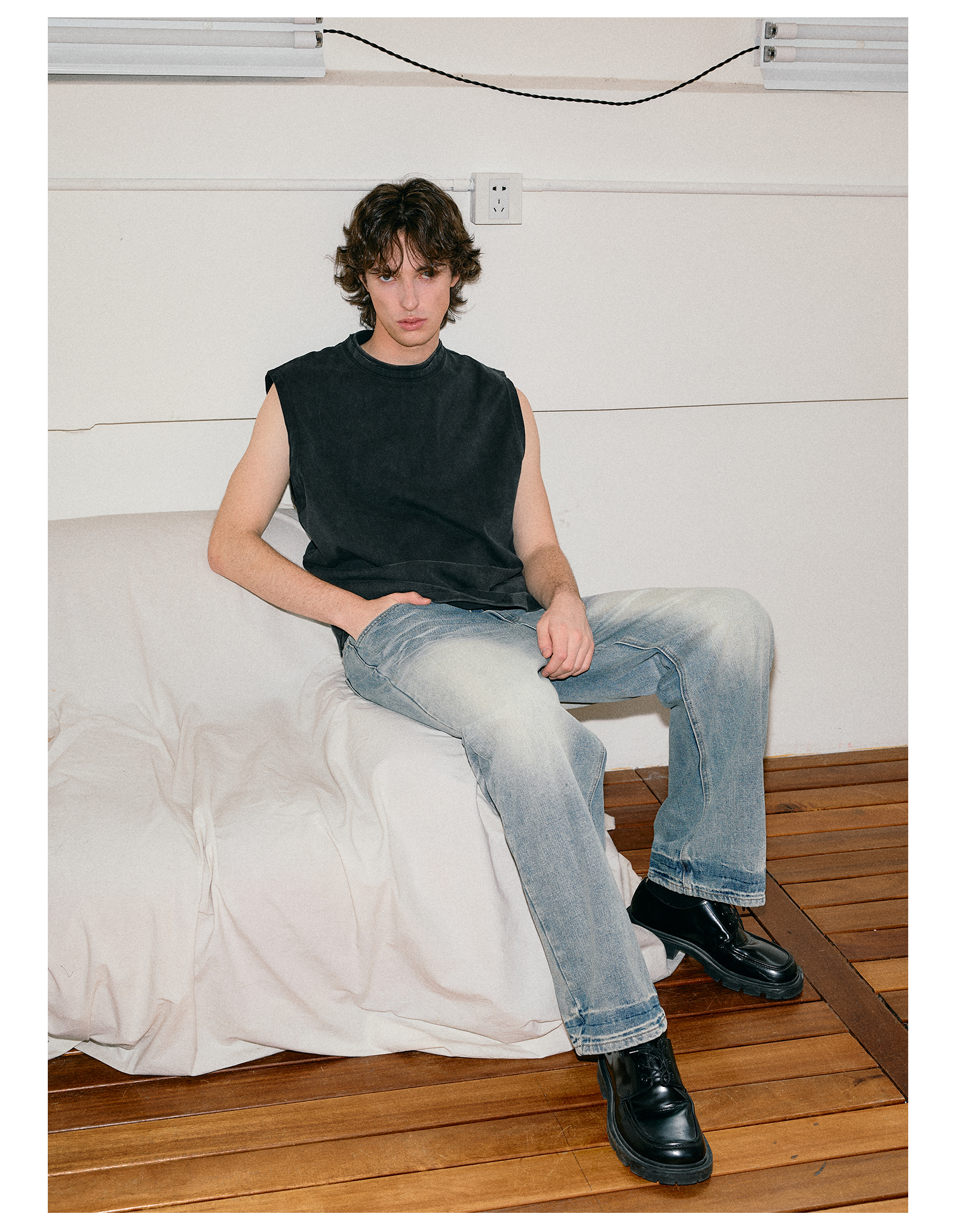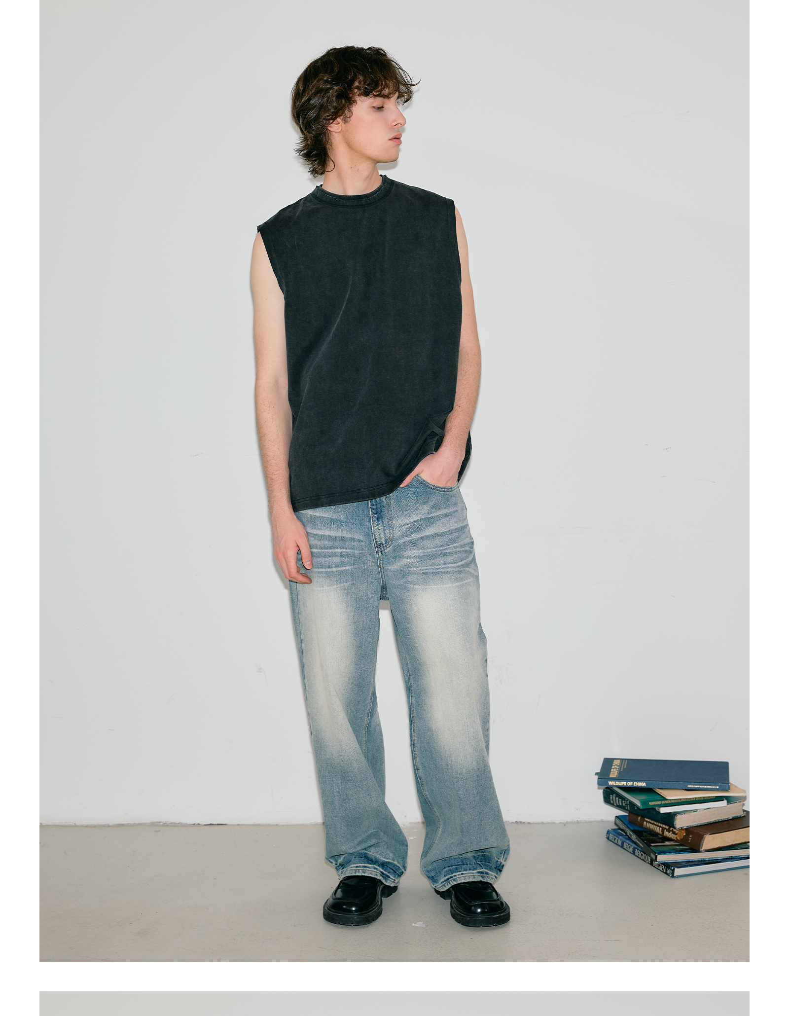 Costful Ro活性炒色全棉針織坎肩背心 雙層毛邊領300g重磅短袖T恤