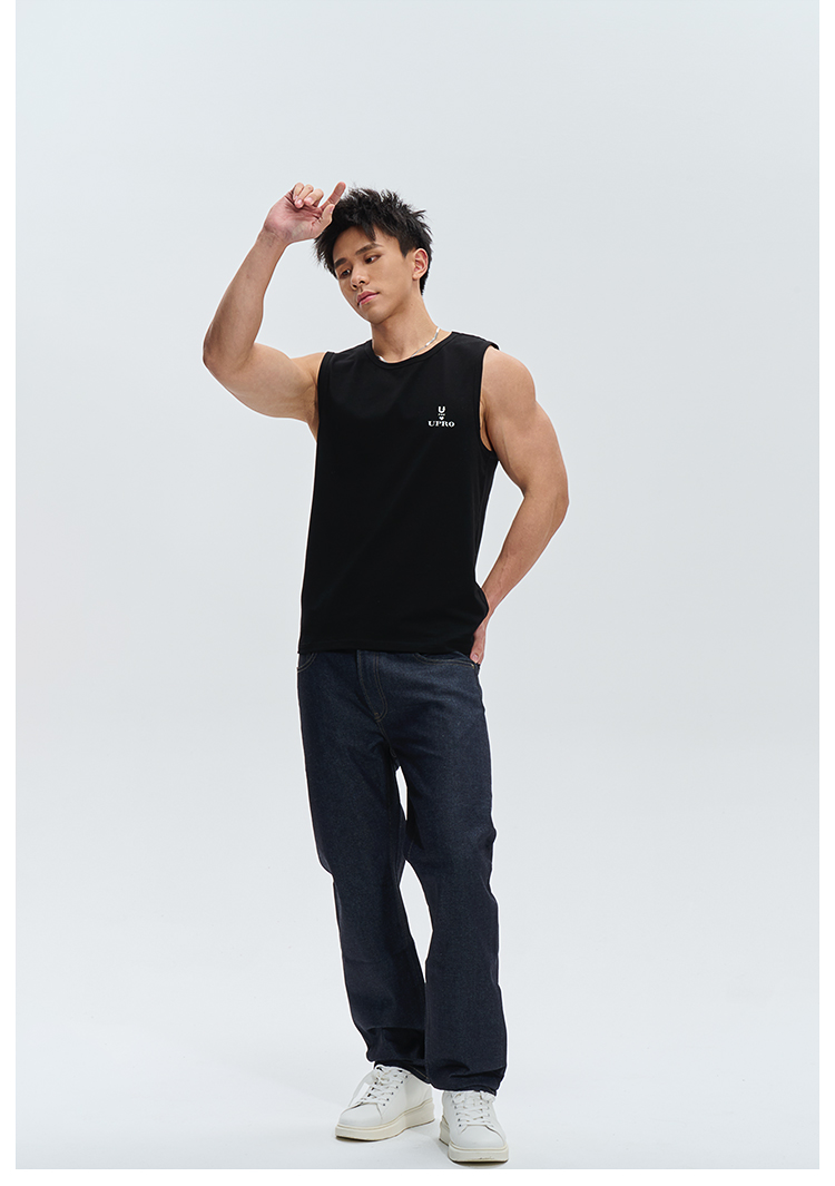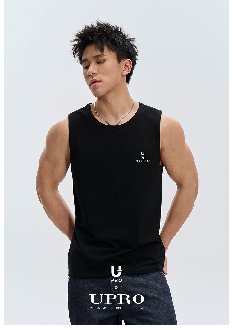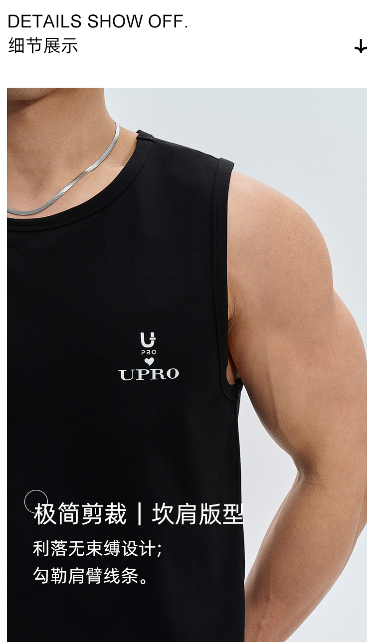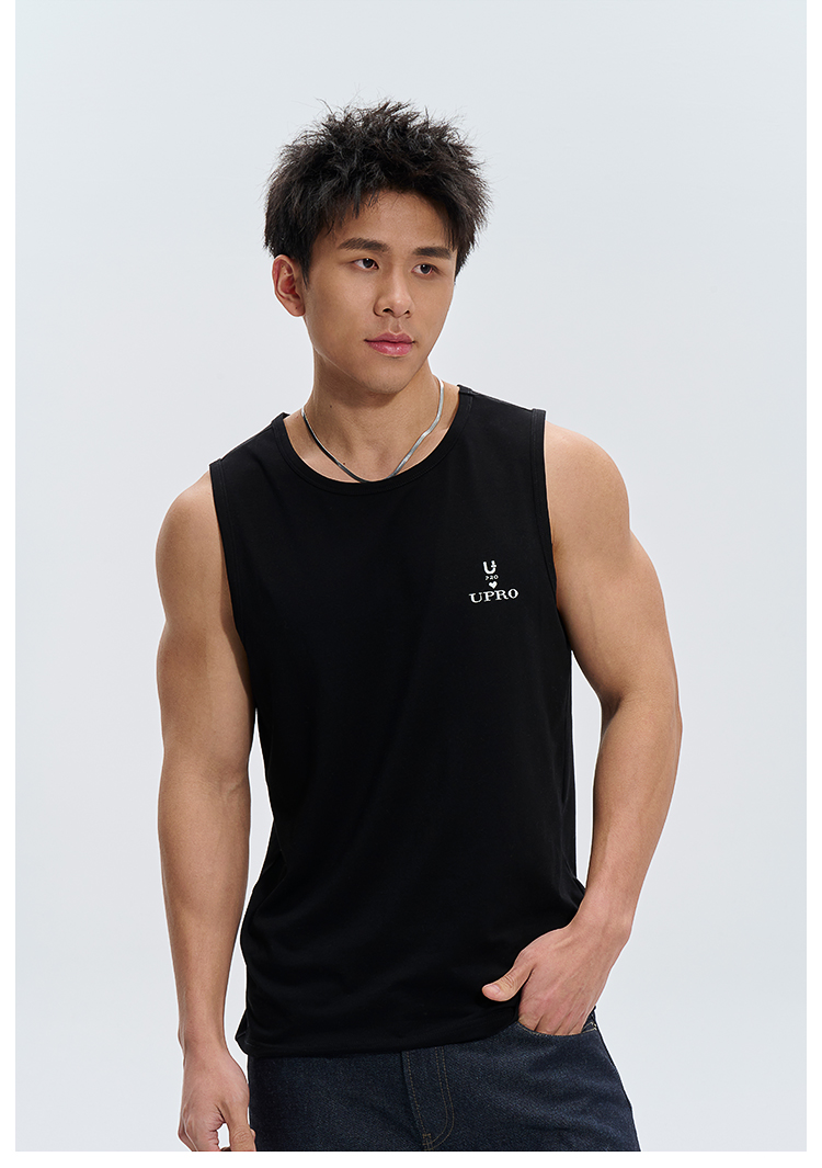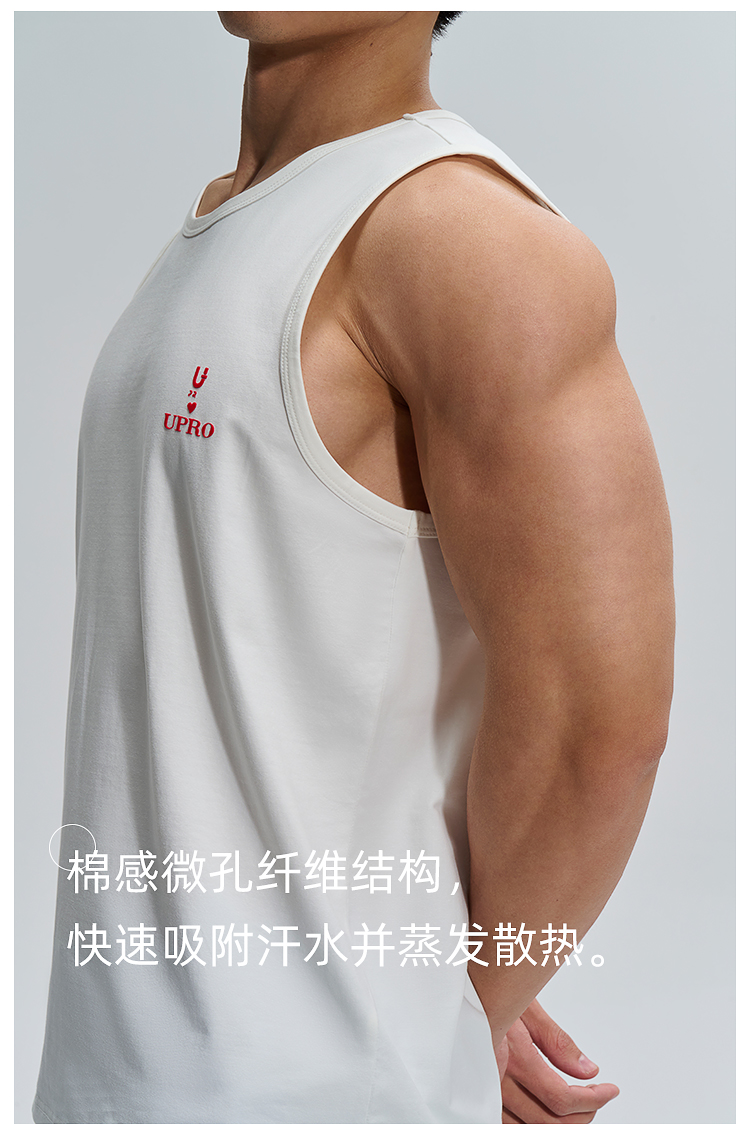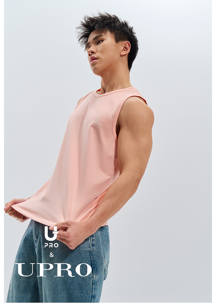 UPRO柚璞男士運動背心無袖T恤速乾透氣舒適打底衫植絨印花
