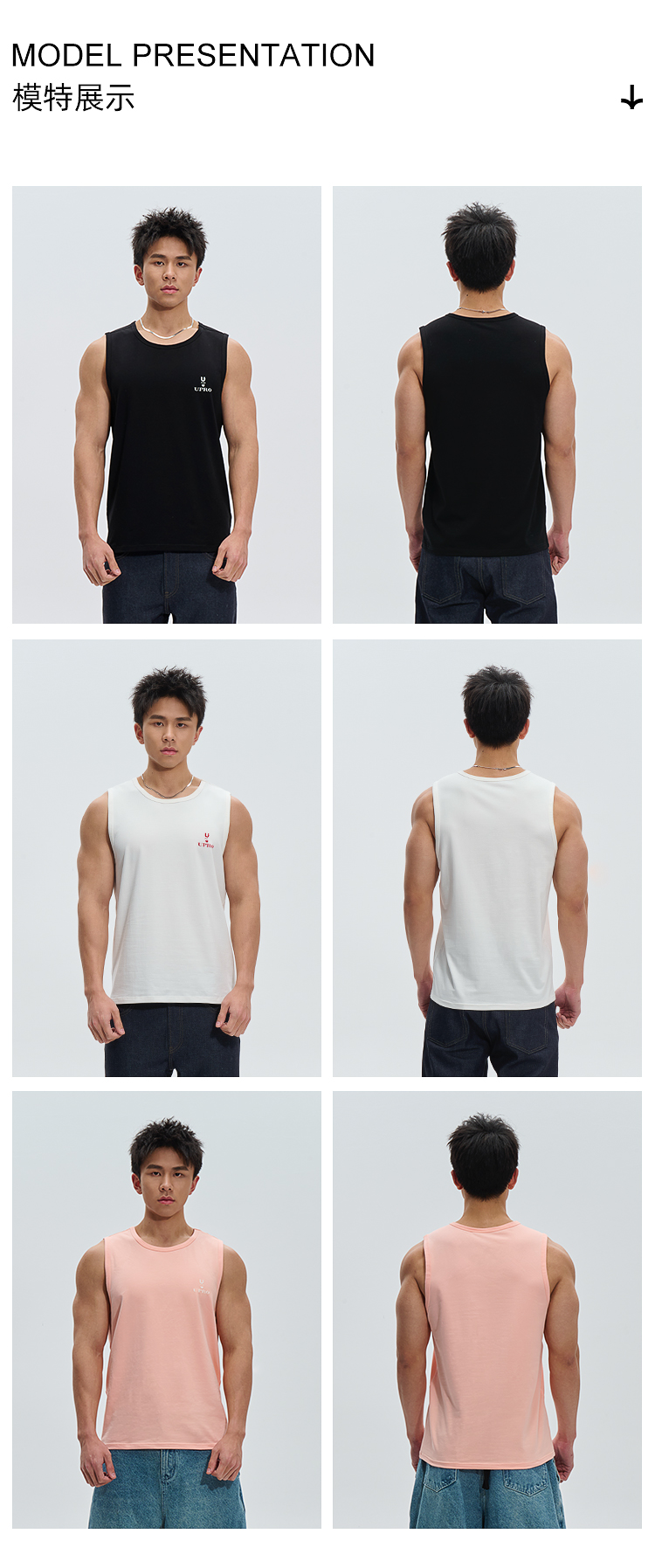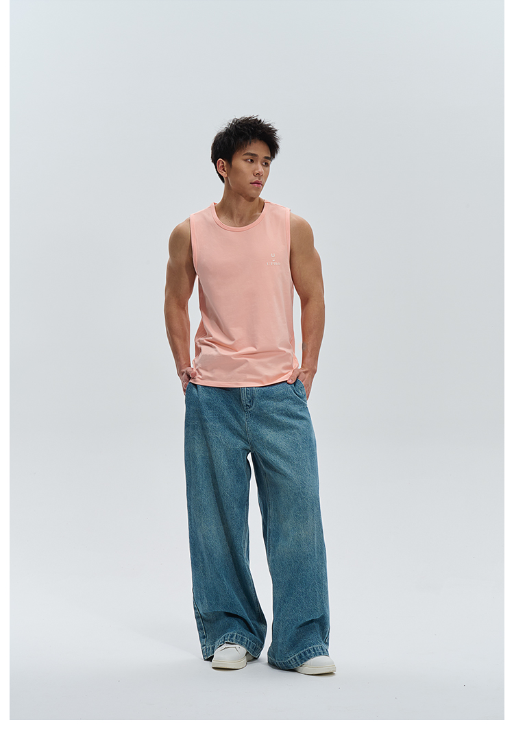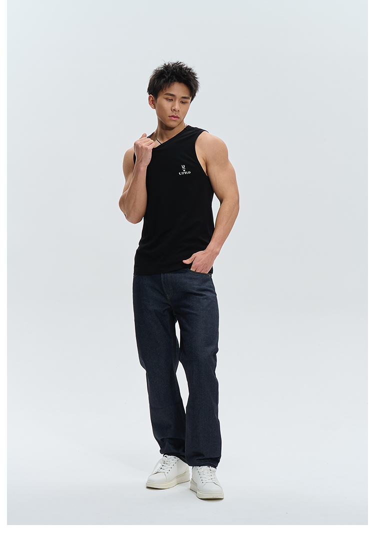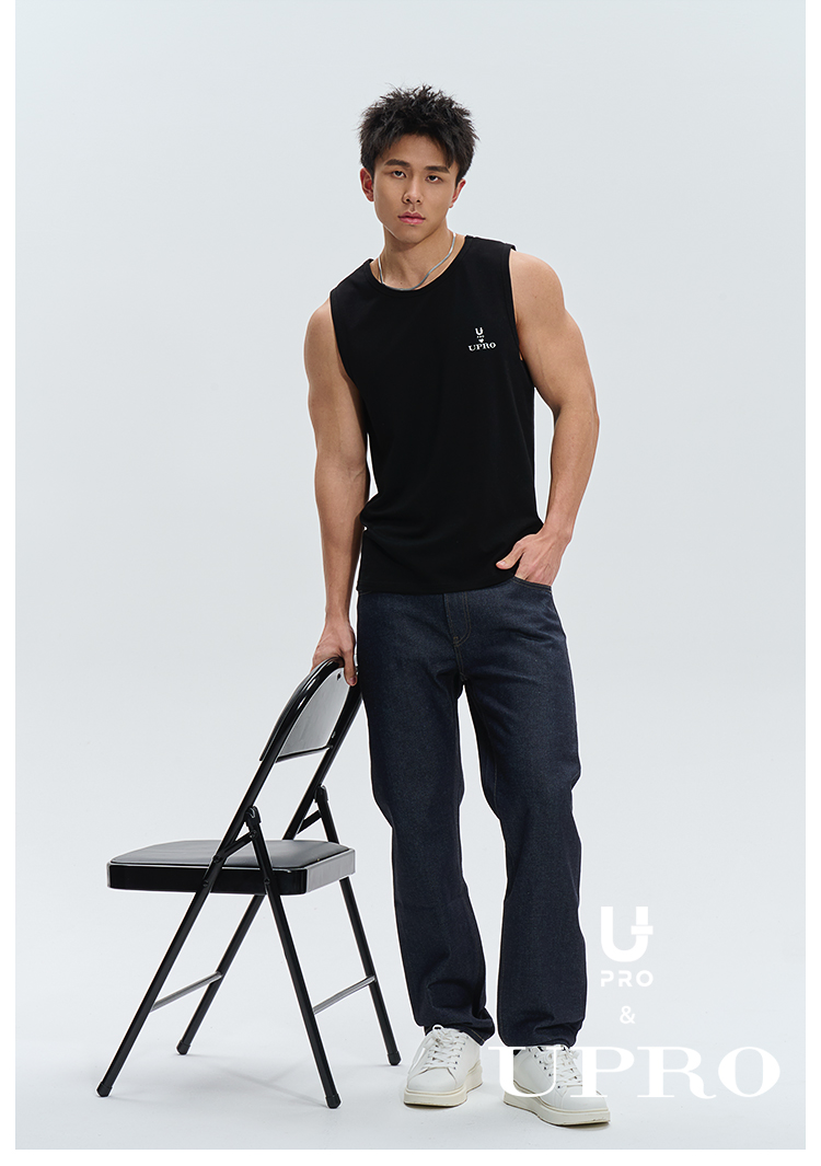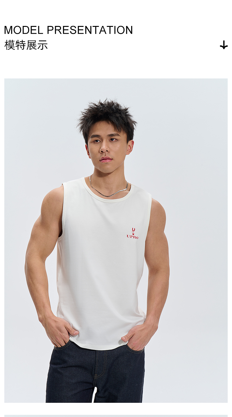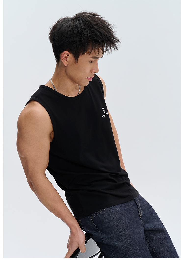 UPRO柚璞男士運動背心無袖T恤速乾透氣舒適打底衫植絨印花