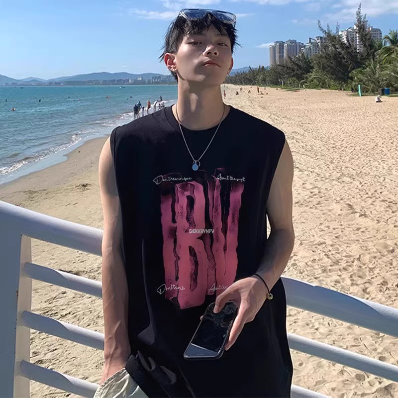 倉石一樹潮牌美式運動休閒背心男士夏季寬松純棉健身訓練無袖T恤