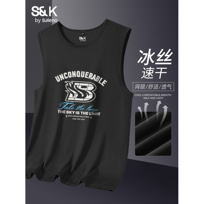 班尼路S&K美式背心男款夏季冰絲籃球健身坎肩速乾衣男運動無袖t恤