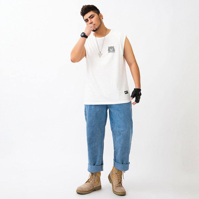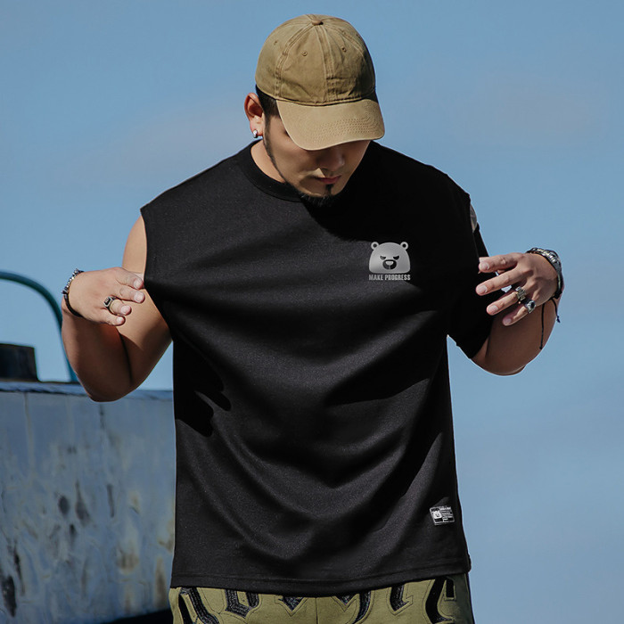 潮牌大碼男裝加肥加大寬松夏季運動休閒街頭潮流卡通熊頭坎肩背心