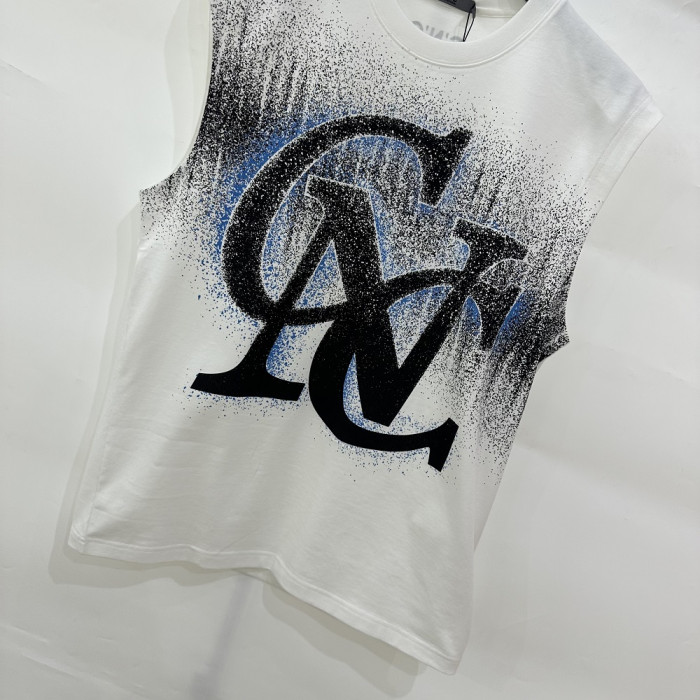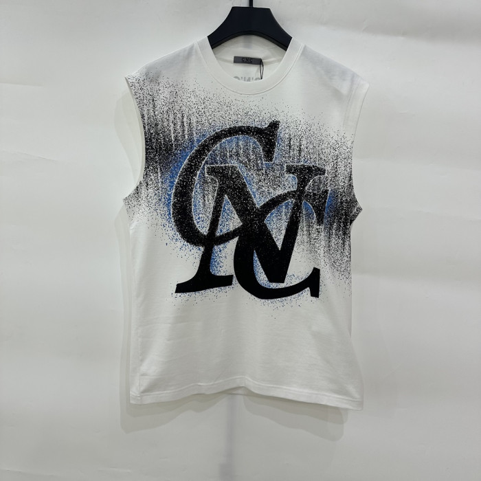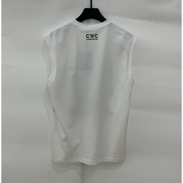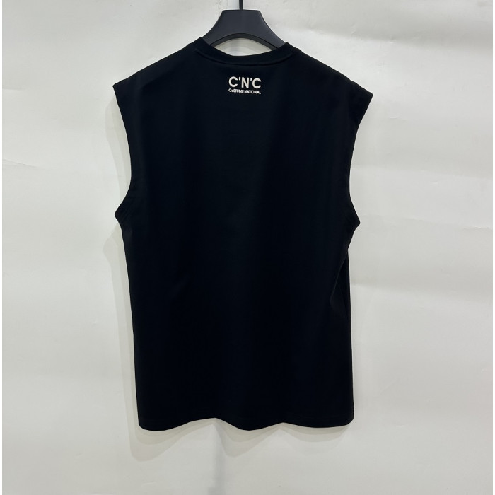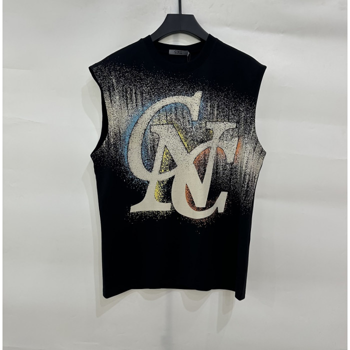 CNC男裝2024年春夏新款字母大噴墨休閒背心無袖T恤811F263005