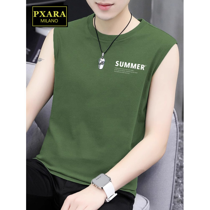 PXARA/高級純棉印花坎肩背心男2025新款夏季寬松無袖T恤運動汗衫