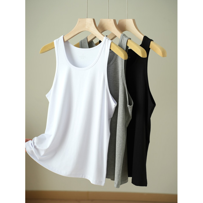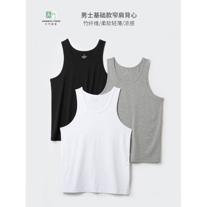 清涼竹纖維 天竹男士涼感外穿圓領窄肩背心 薄款T恤 夏款大碼男裝