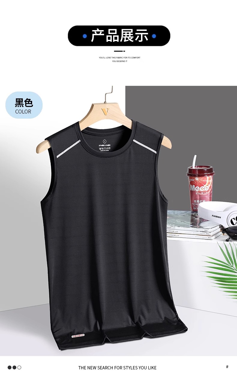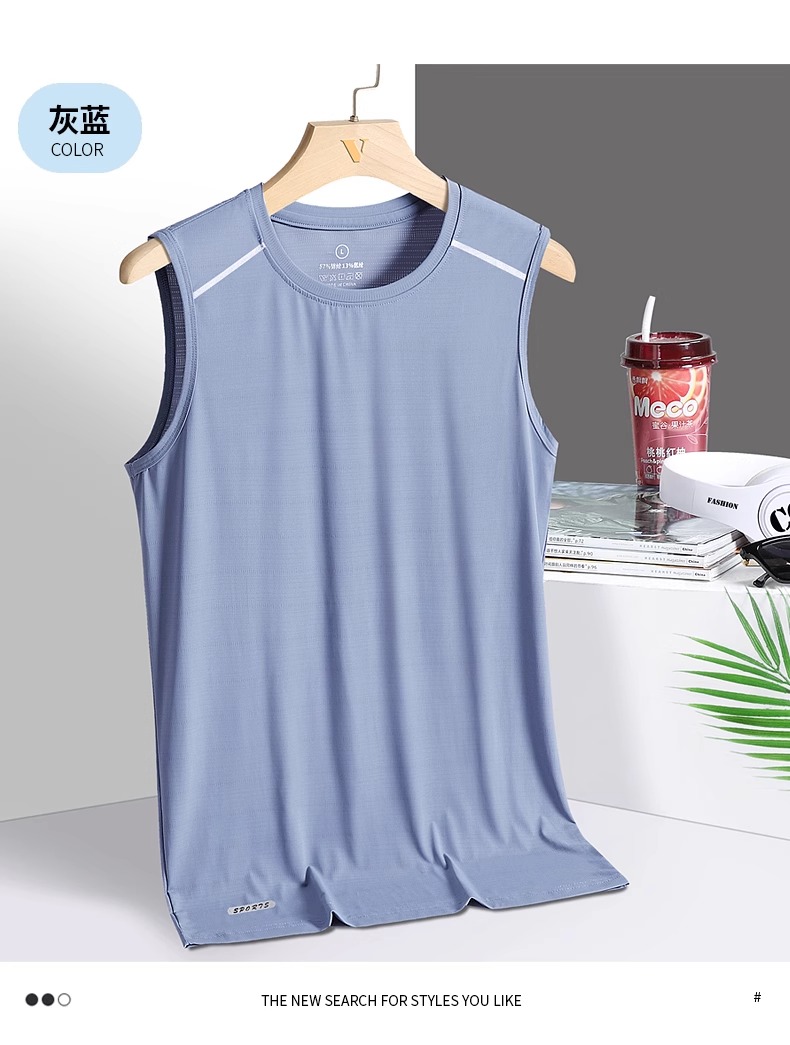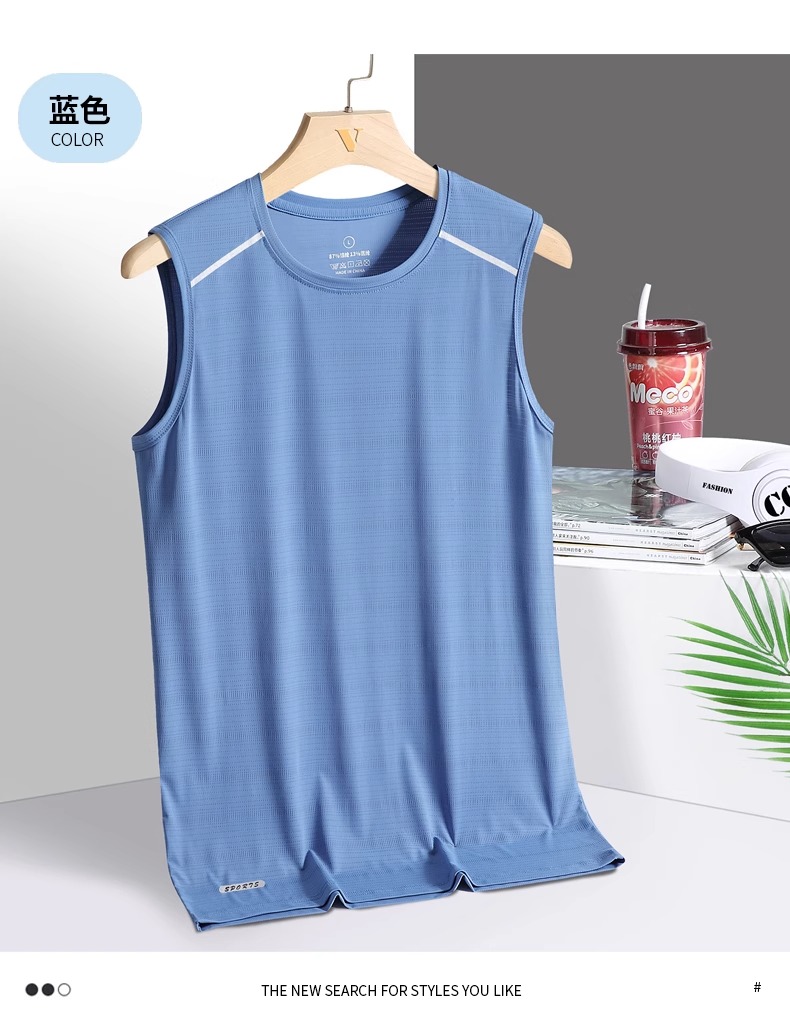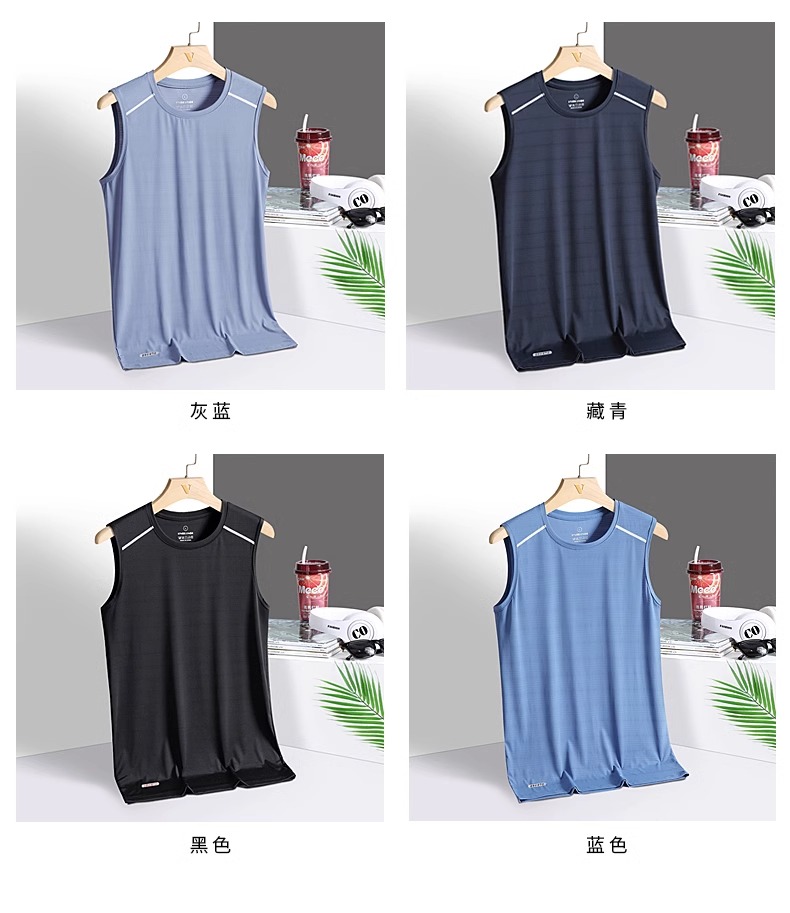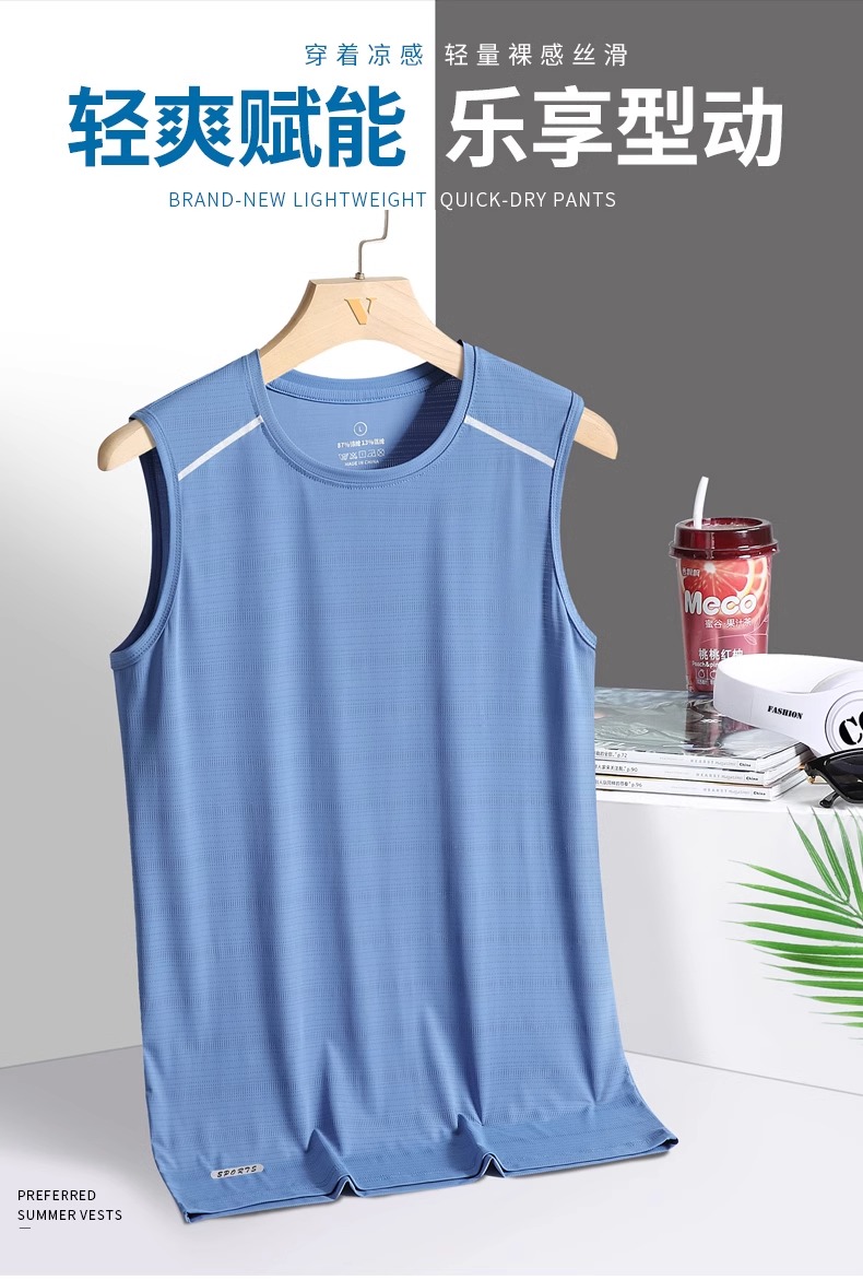 冰絲背心男夏季薄款胖子大碼運動健身汗衫寬松無袖t恤速乾打底衫