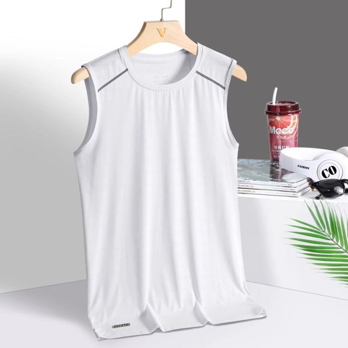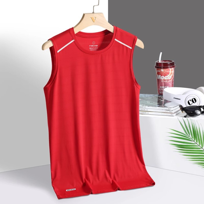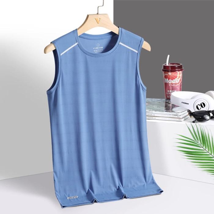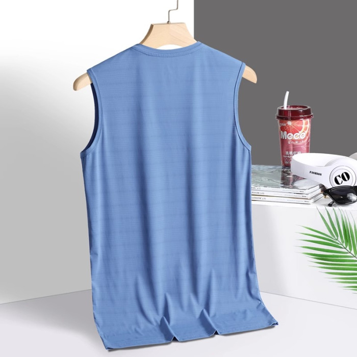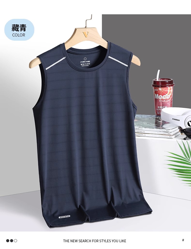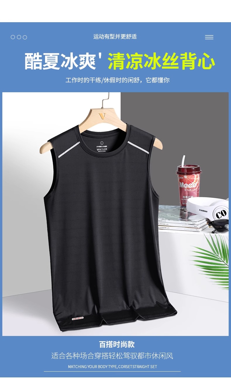 冰絲背心男夏季薄款胖子大碼運動健身汗衫寬松無袖t恤速乾打底衫