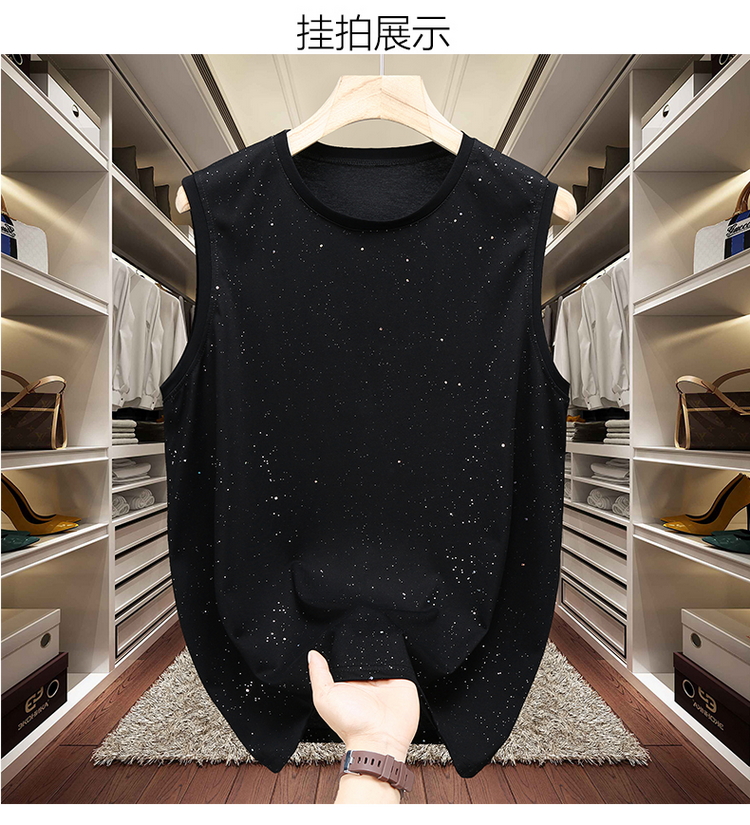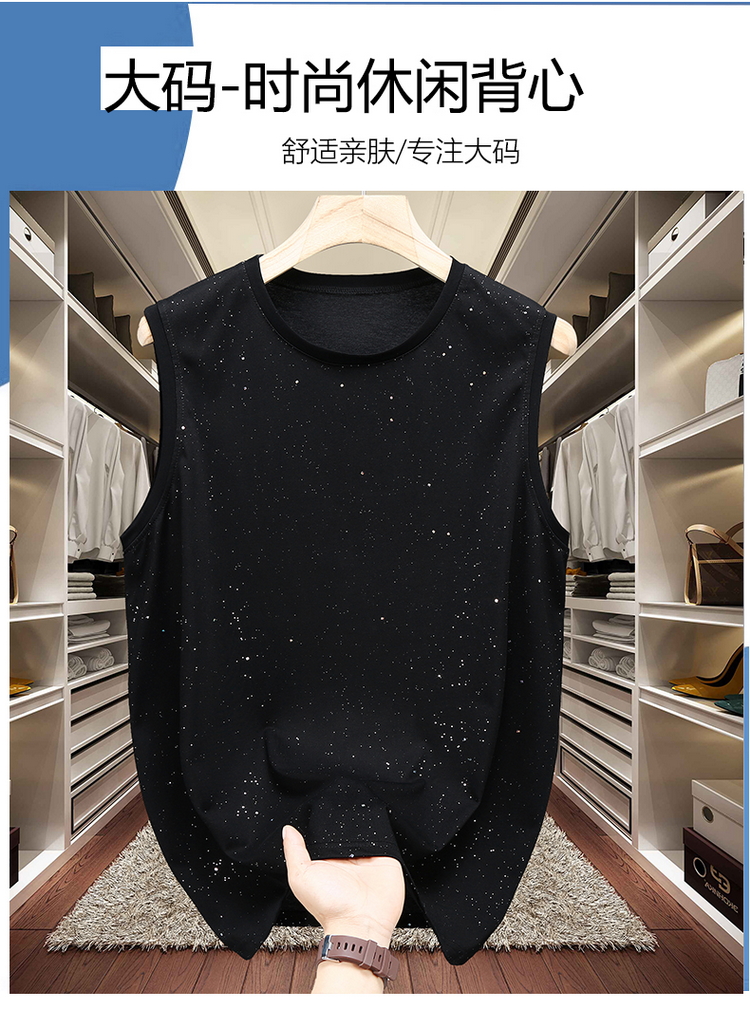 380斤夏季新款滿天星坎肩背心男加肥加大無袖潮牌T恤百搭寬松上衣