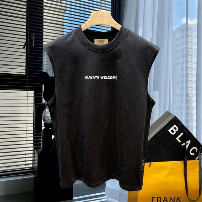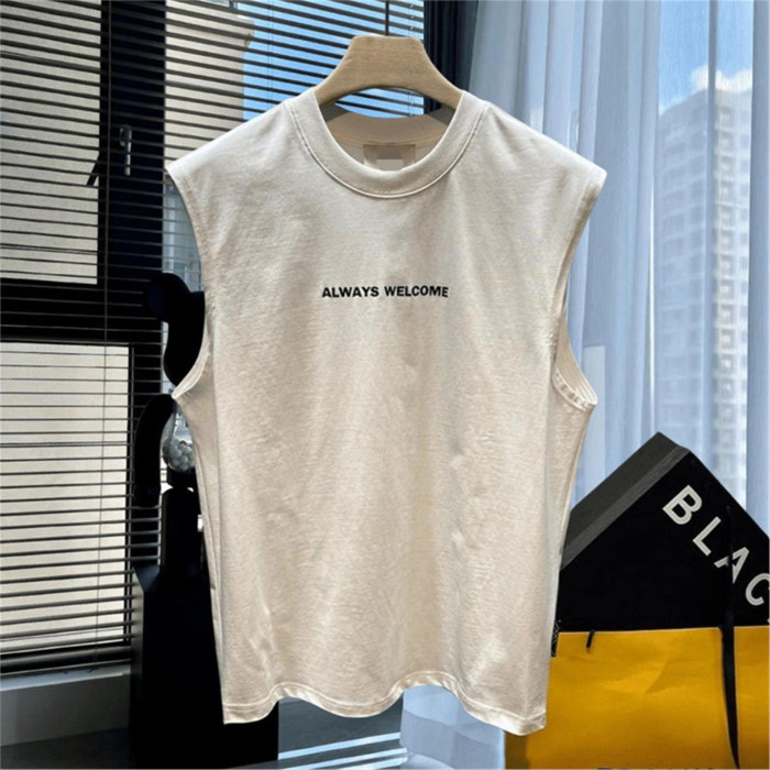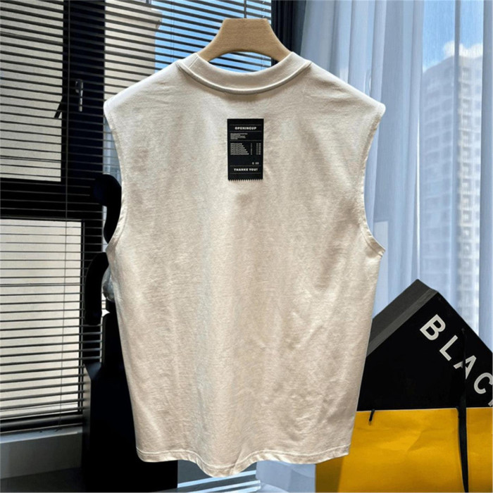 2025夏季男士白色純棉運動背心薄款健身美式籃球無袖上衣透氣坎肩