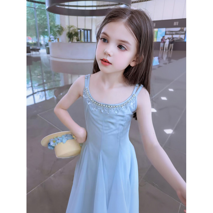 女童連衣裙夏季2025新款兒童洋氣時髦吊帶裙女大童夏款度假公主裙