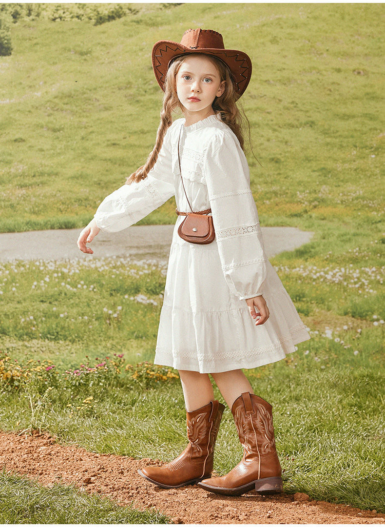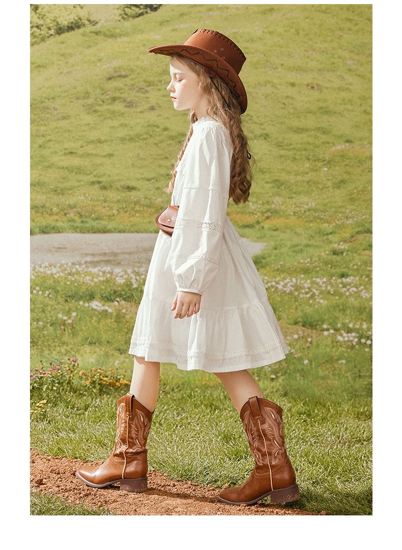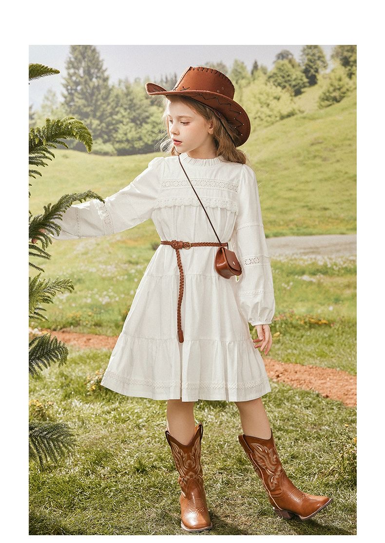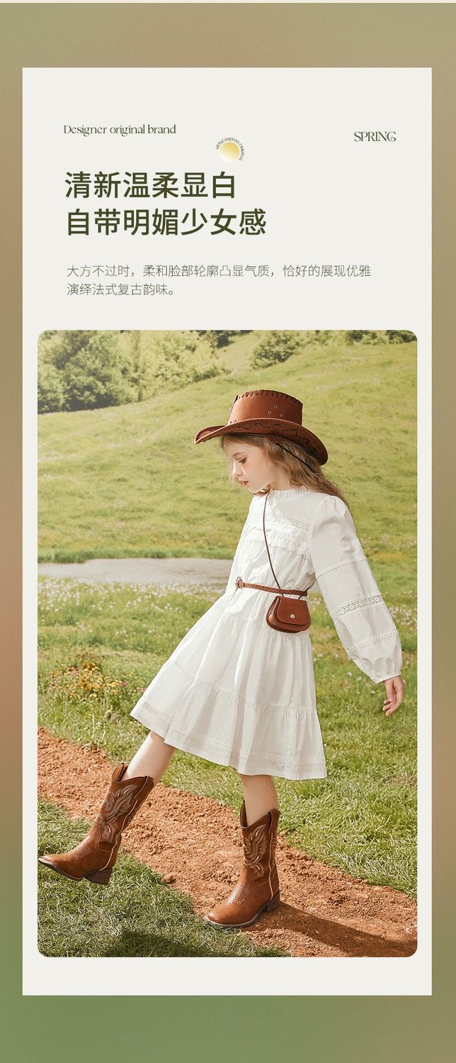 2025年春裝新款女童裙子兒童白色連衣裙高級感森系春秋公主裙洋氣