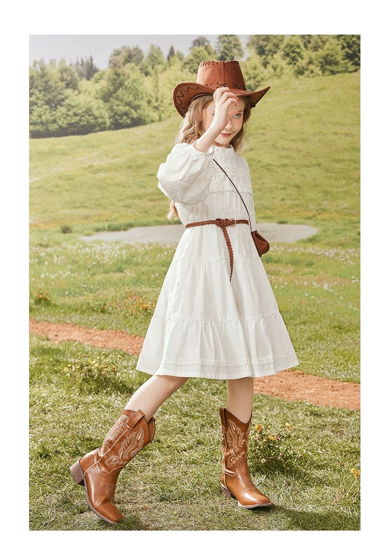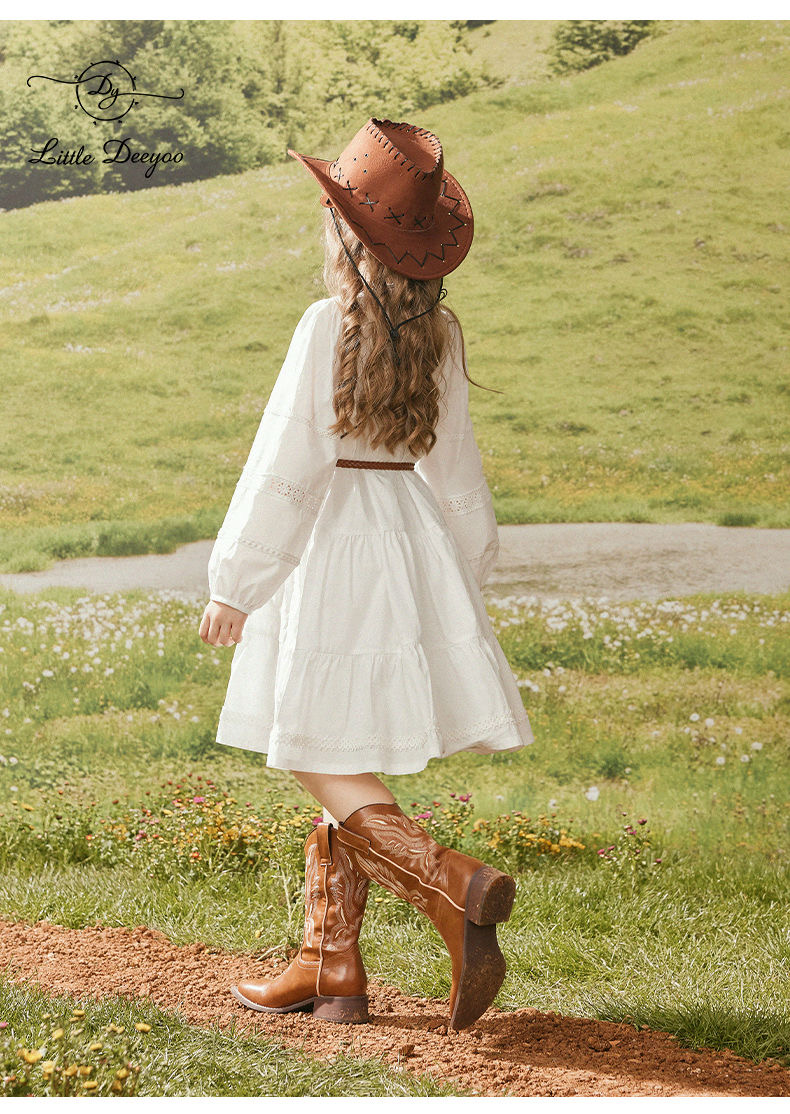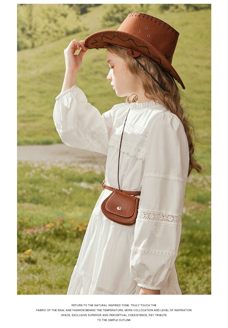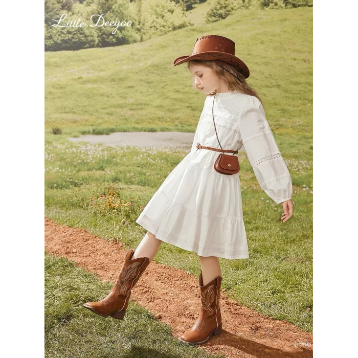 2025年春裝新款女童裙子兒童白色連衣裙高級感森系春秋公主裙洋氣