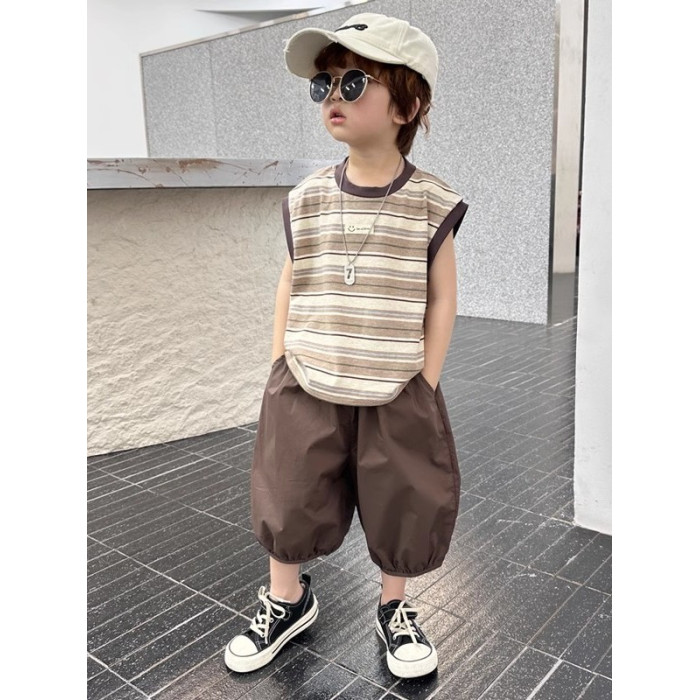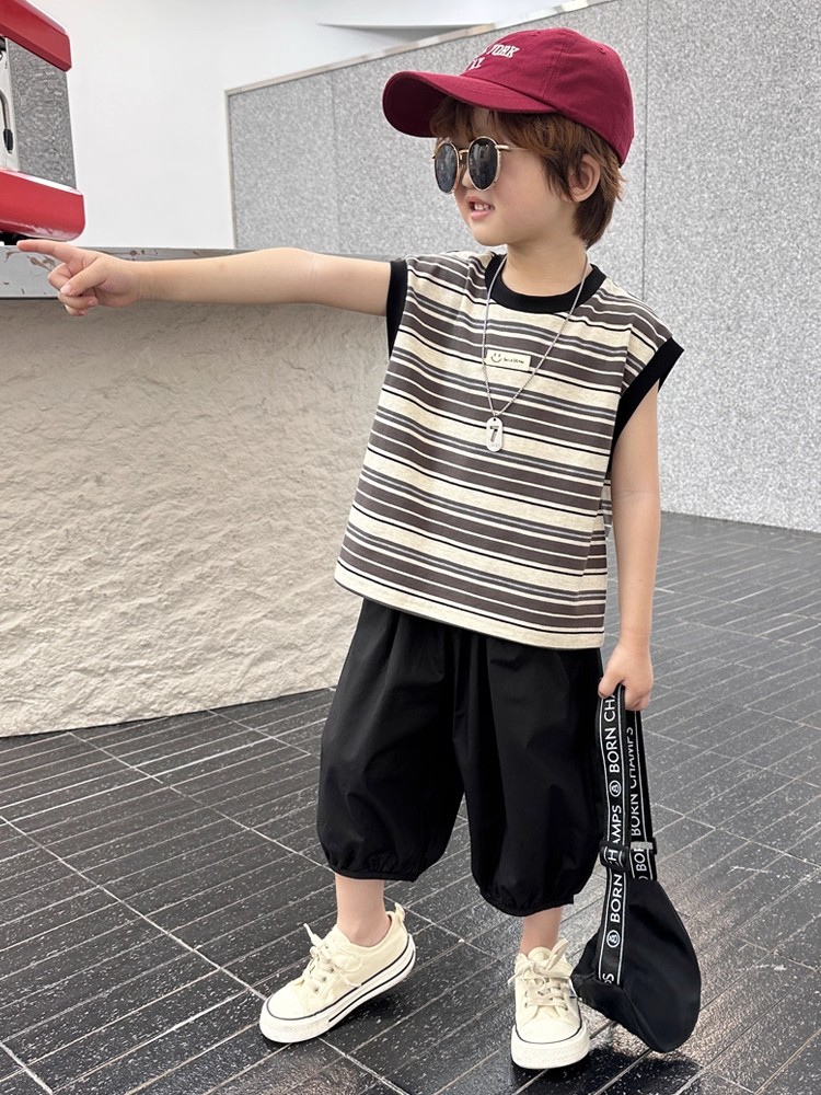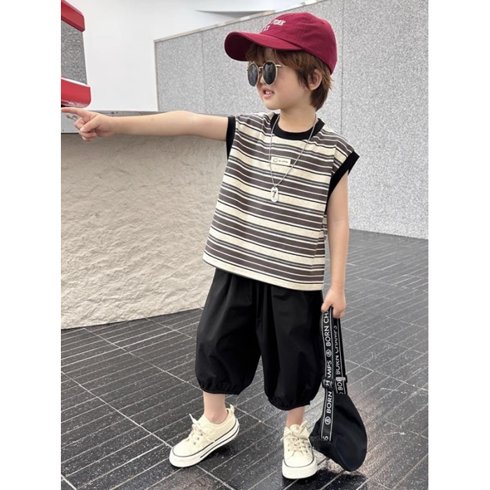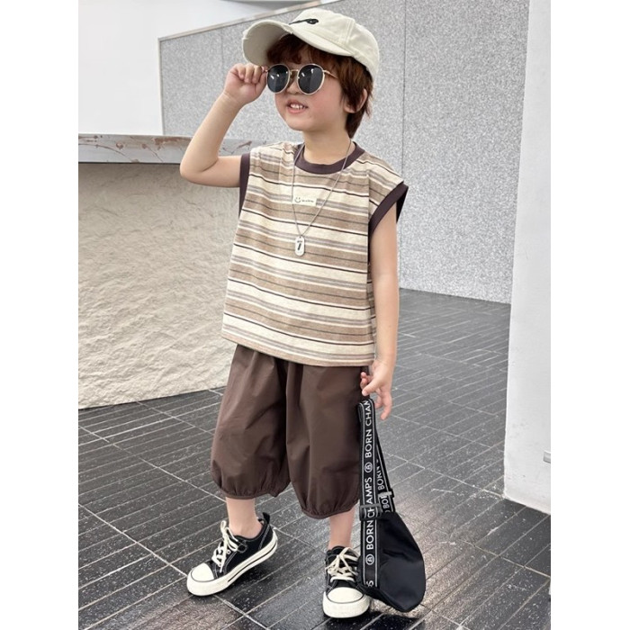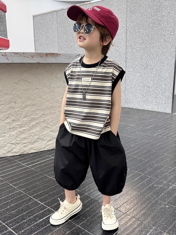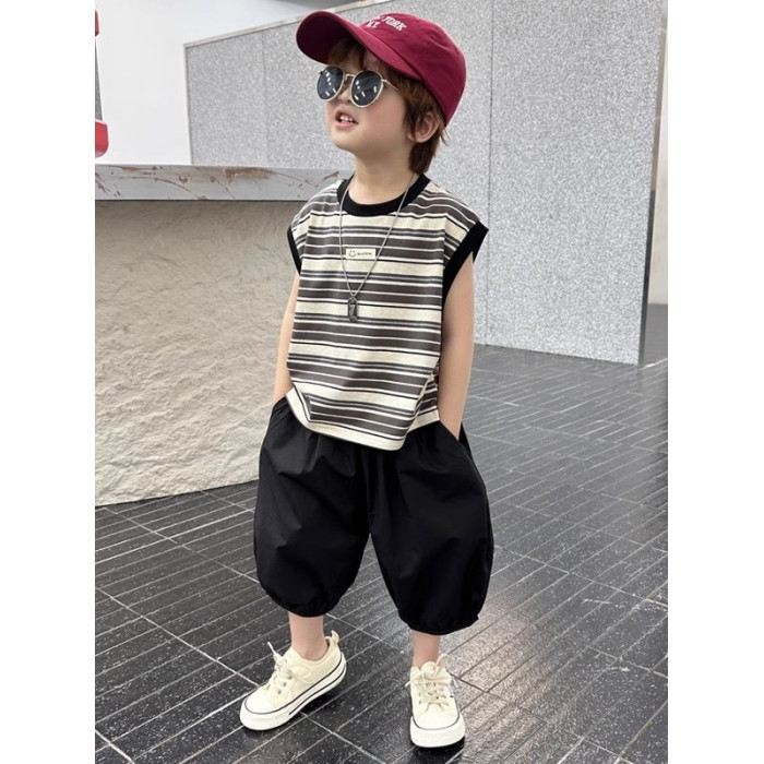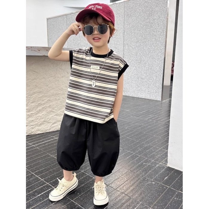 英國next svip男童裝無袖t恤套裝22025新款兒童松弛燈籠褲兩件套