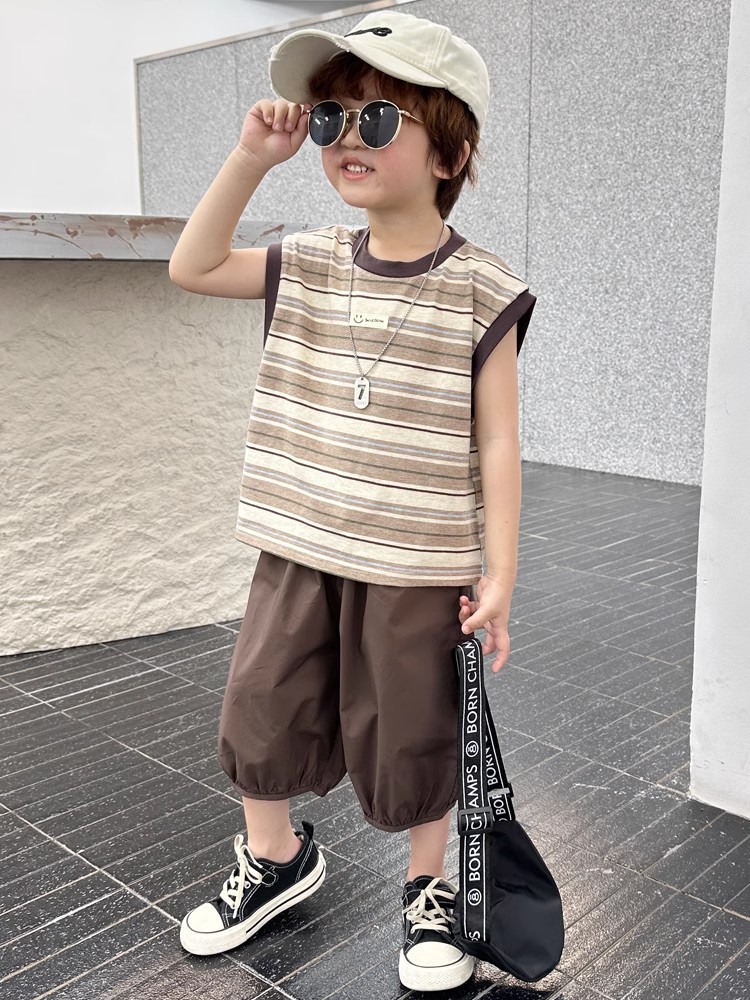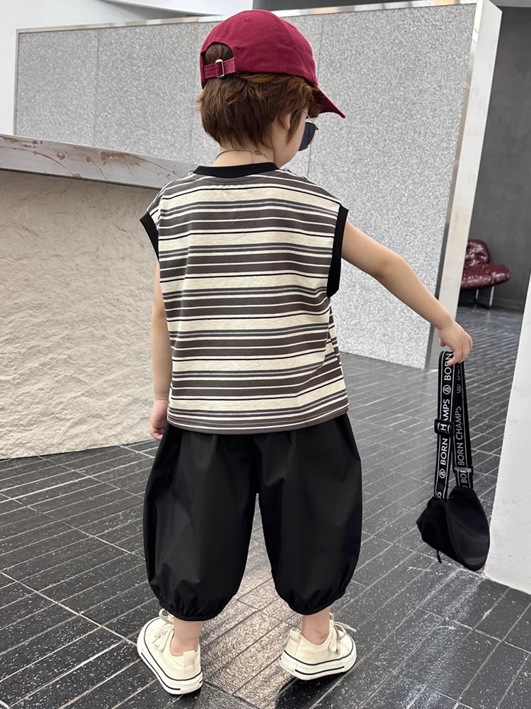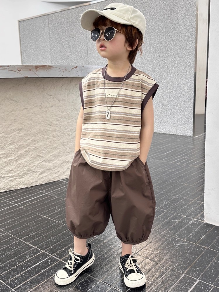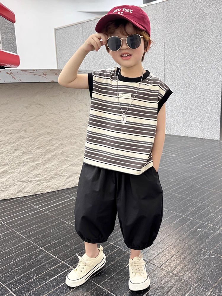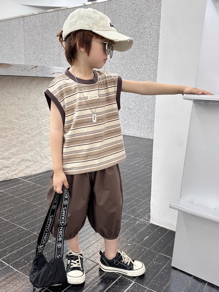 英國next svip男童裝無袖t恤套裝22025新款兒童松弛燈籠褲兩件套