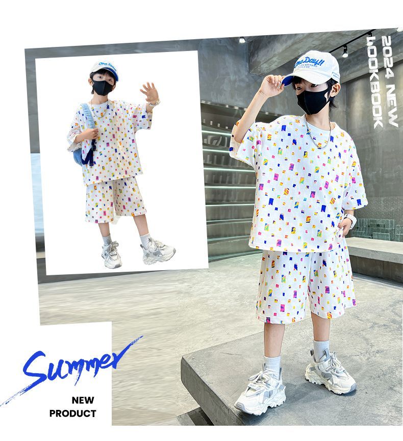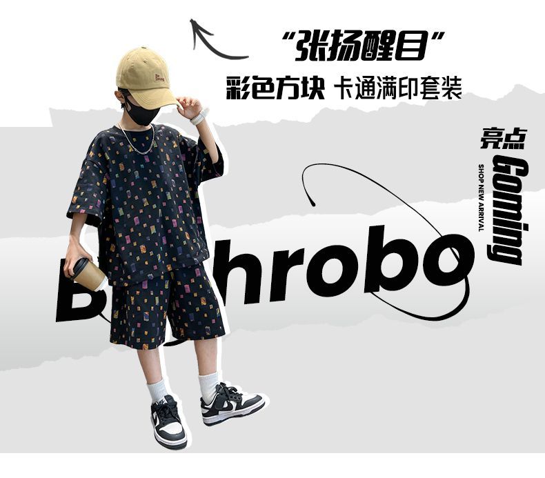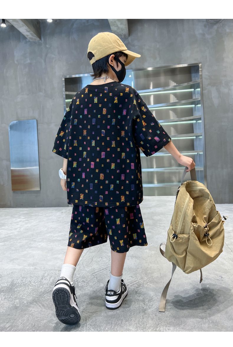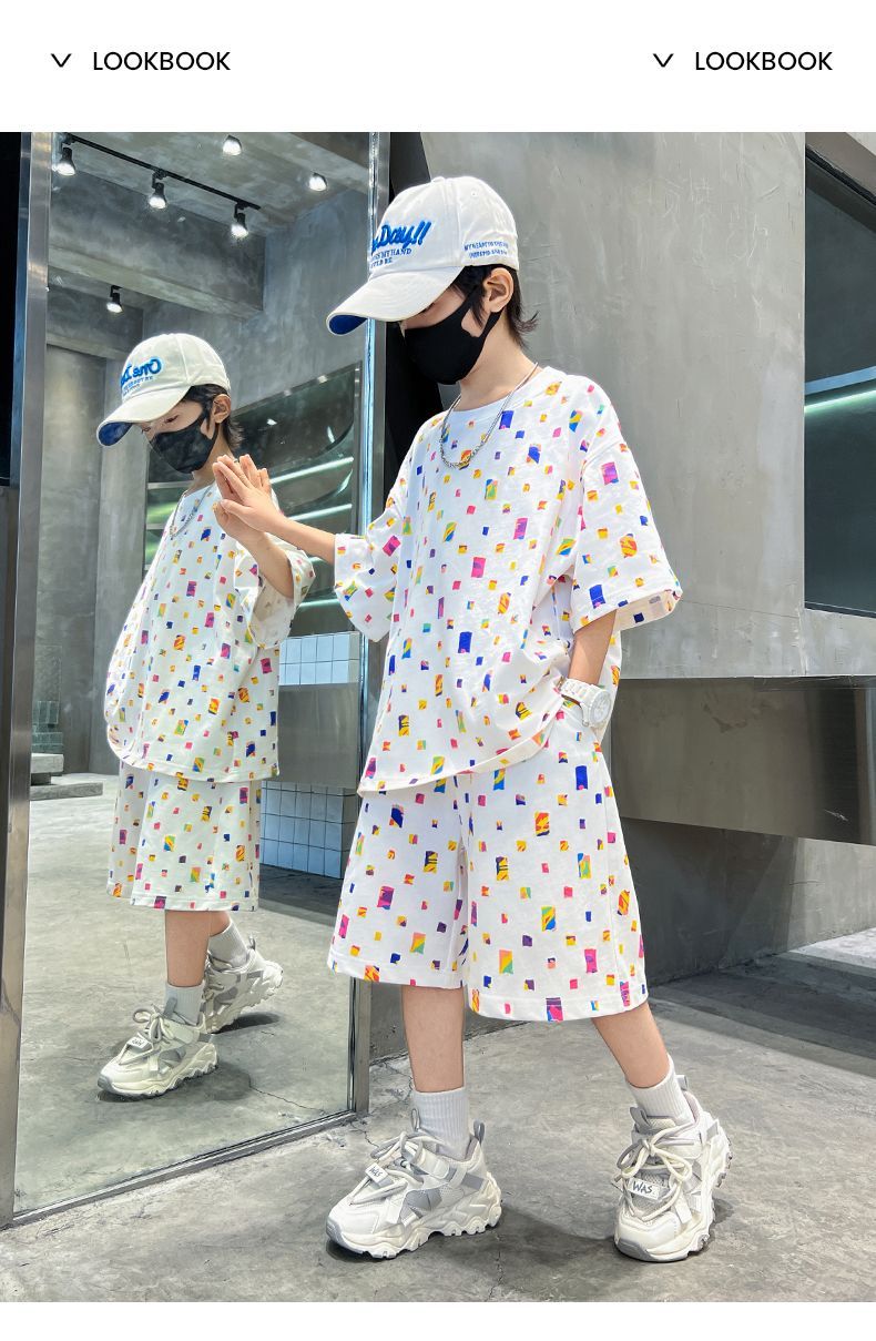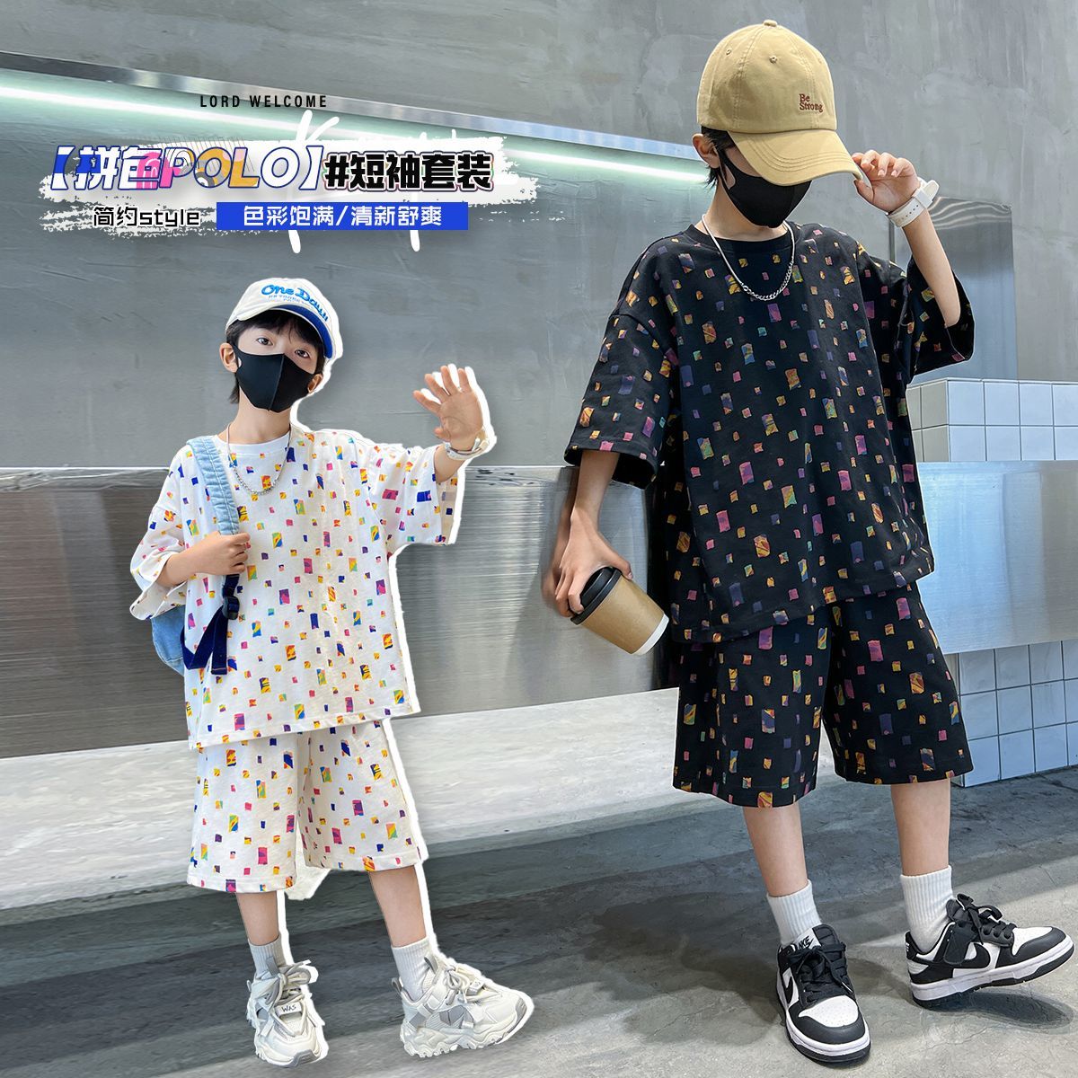 安哼安哼男童夏裝彩色方塊短袖套裝時髦洋氣2025夏季新款兒童夏款