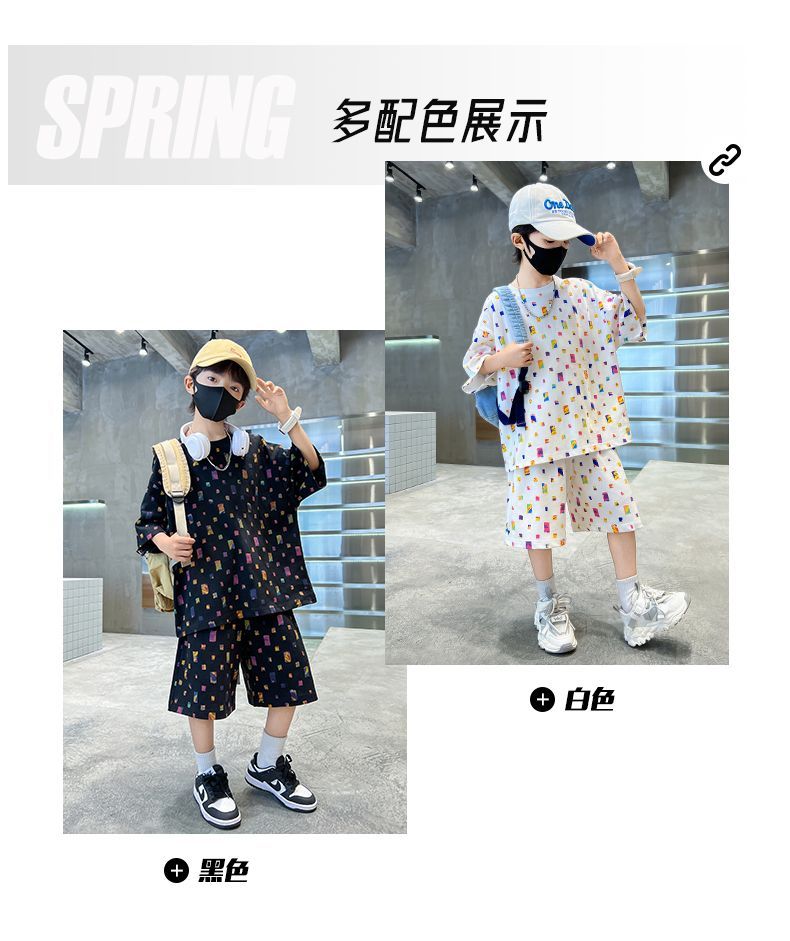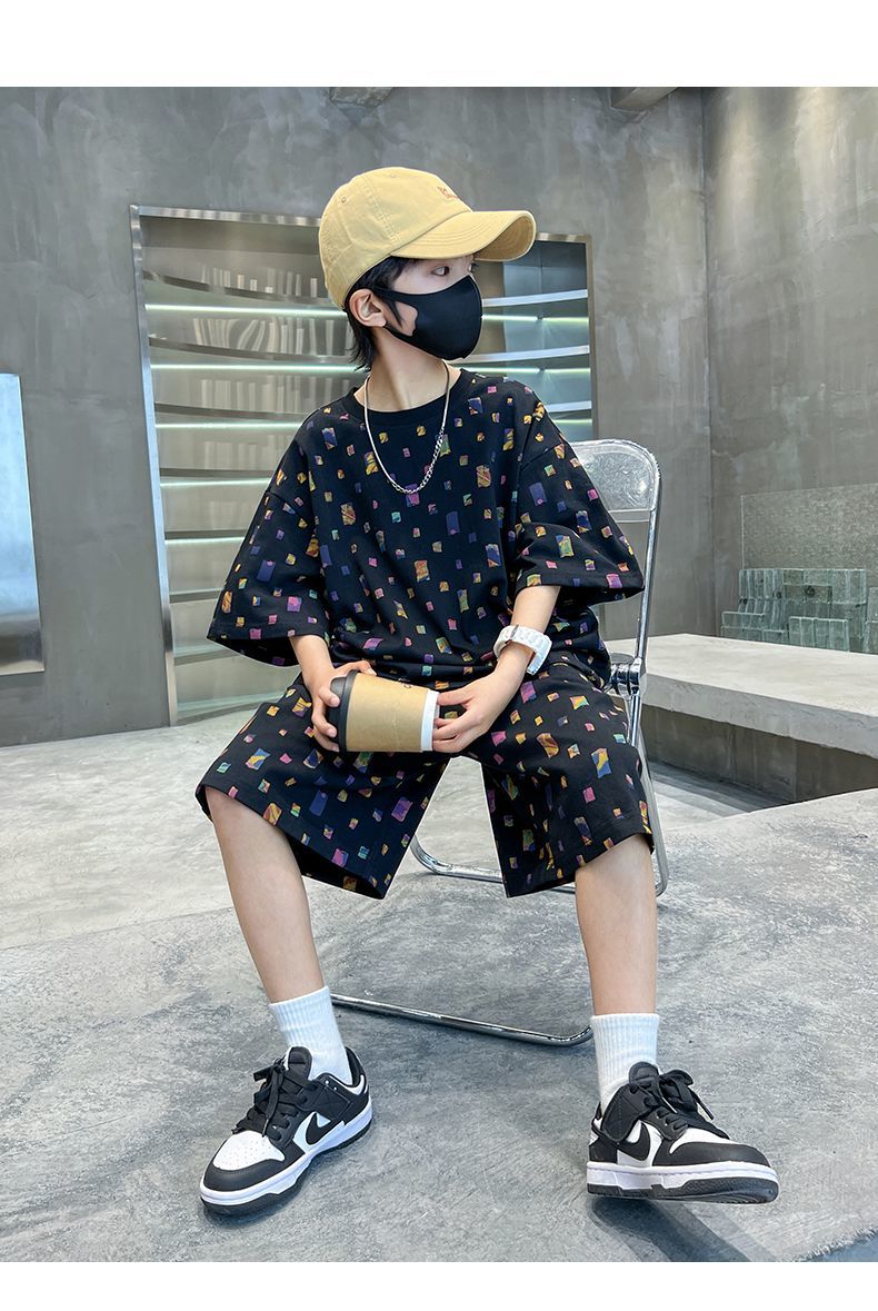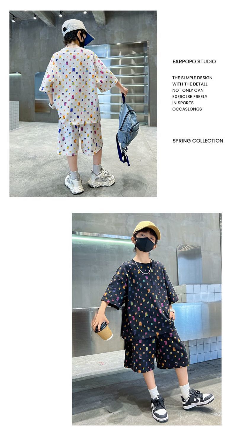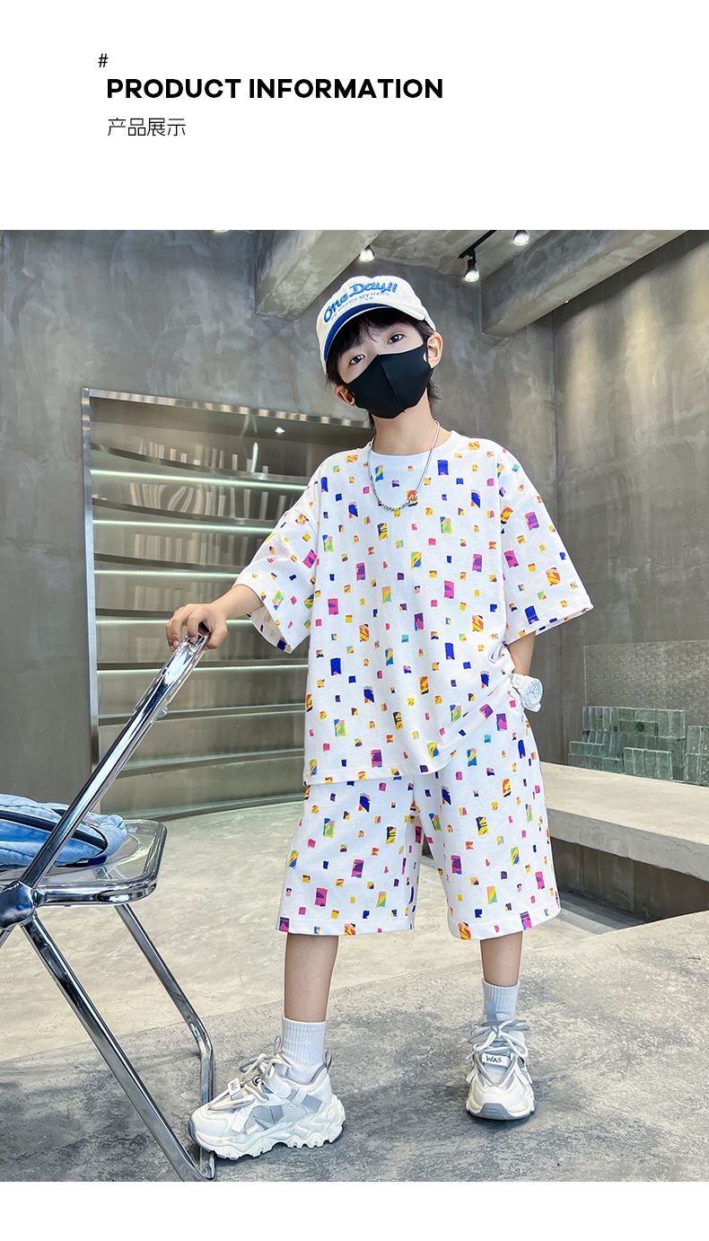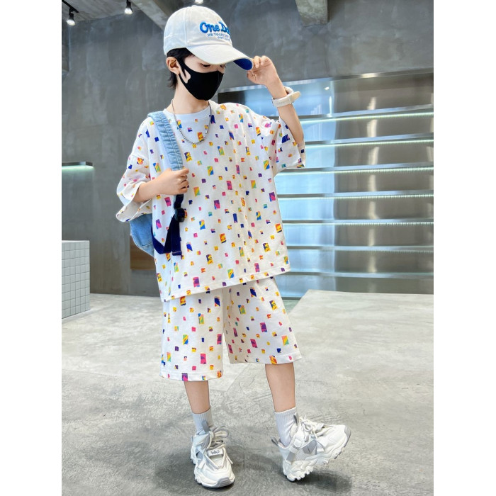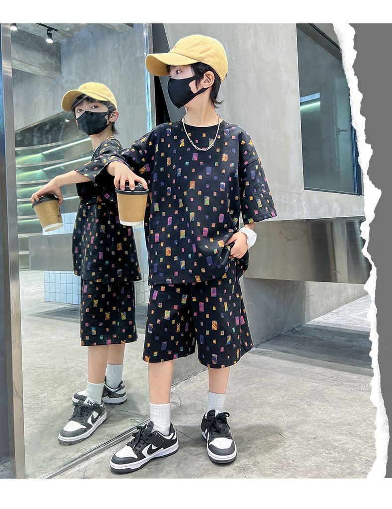 安哼安哼男童夏裝彩色方塊短袖套裝時髦洋氣2025夏季新款兒童夏款