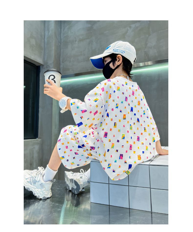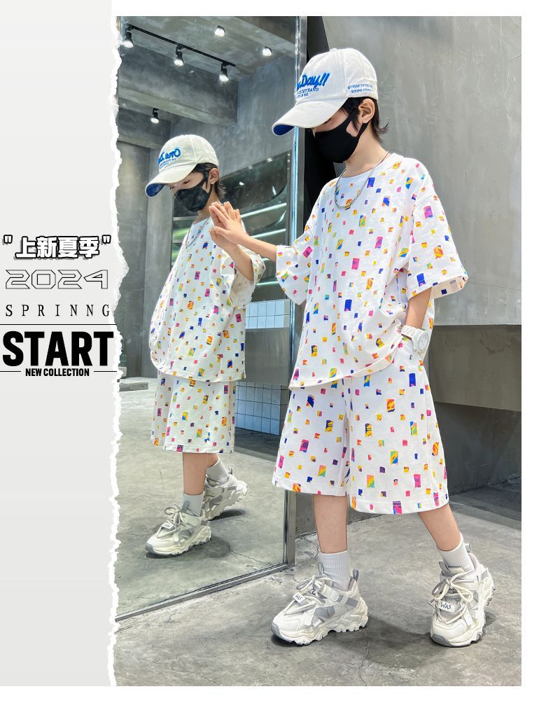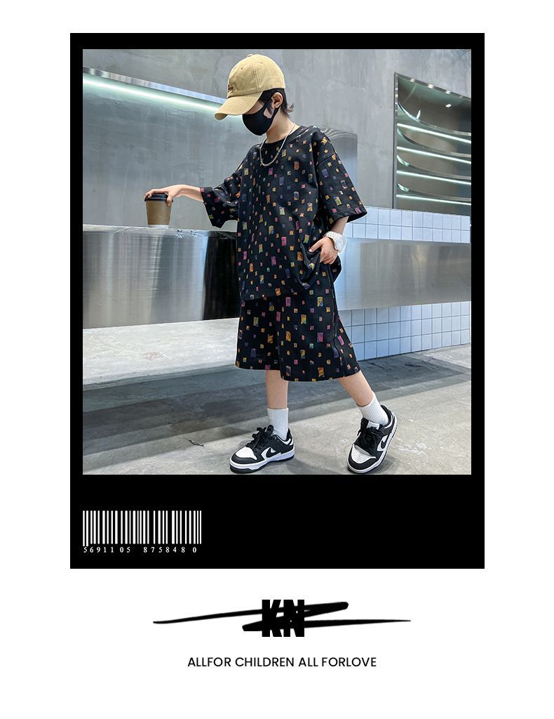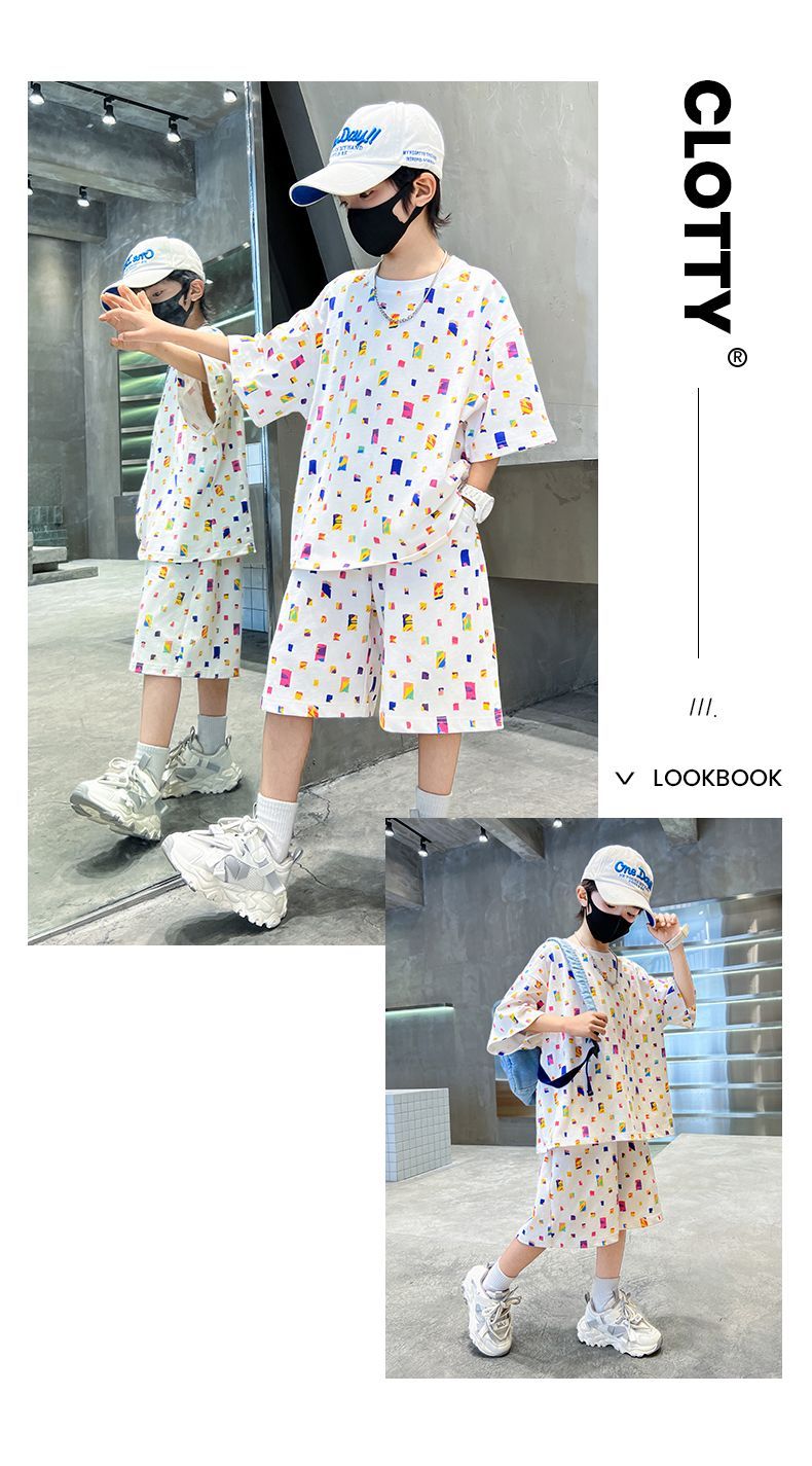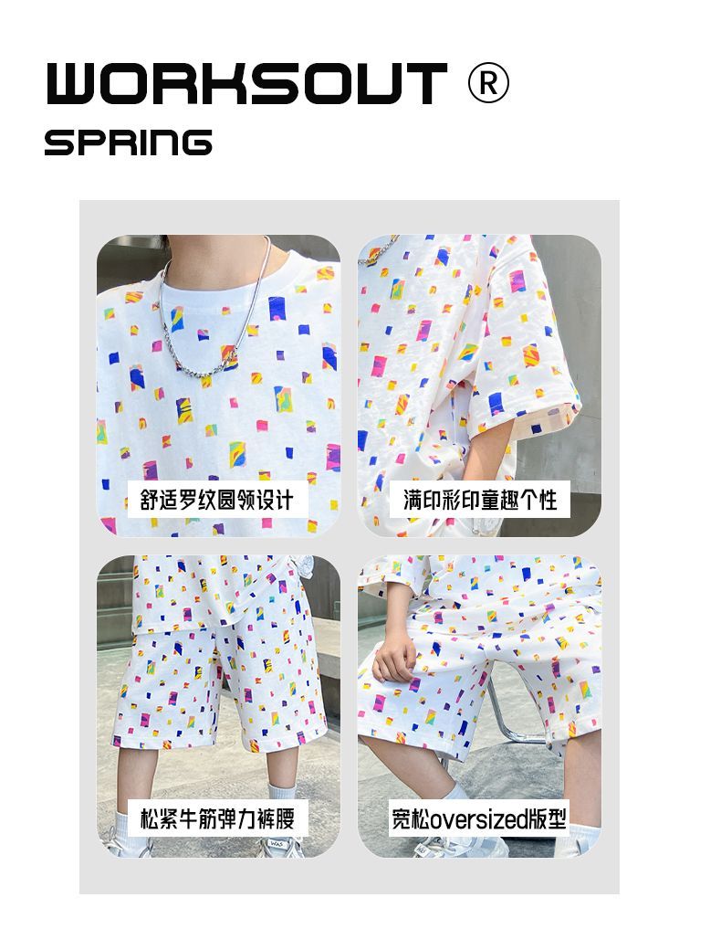 安哼安哼男童夏裝彩色方塊短袖套裝時髦洋氣2025夏季新款兒童夏款