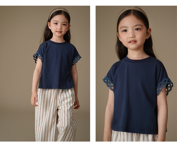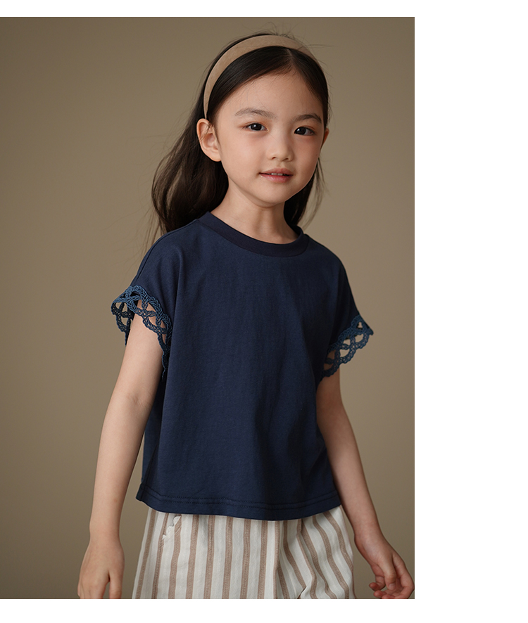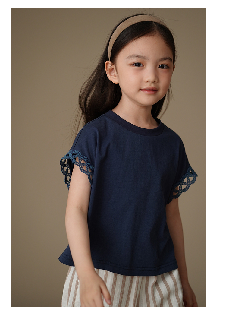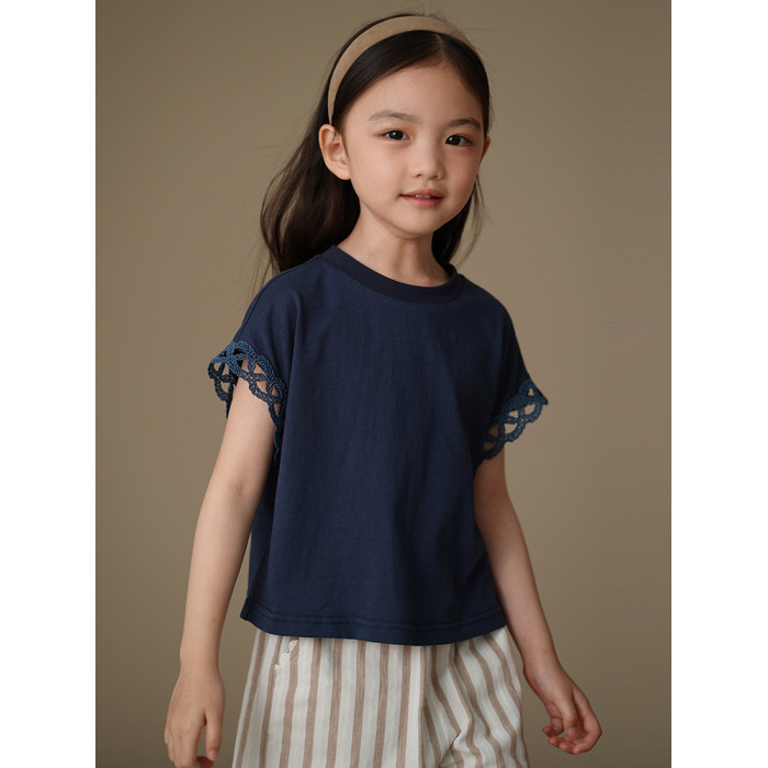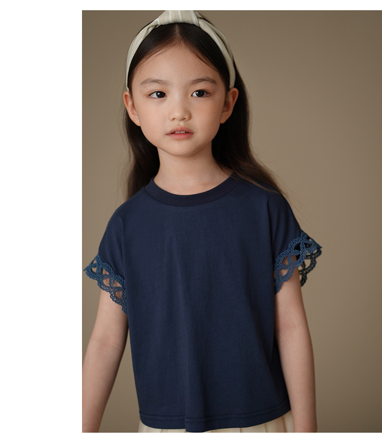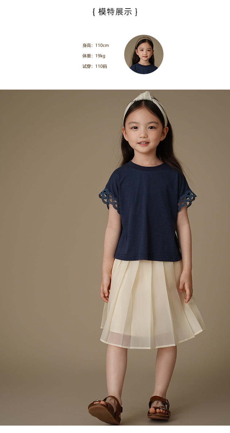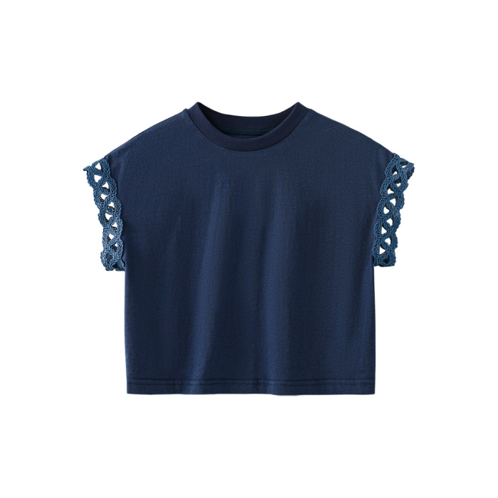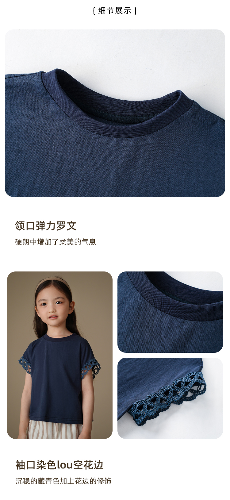 哈齒童裝夏季兒童藏青上衣簡約設計感短袖T恤女童夏裝新款中大童