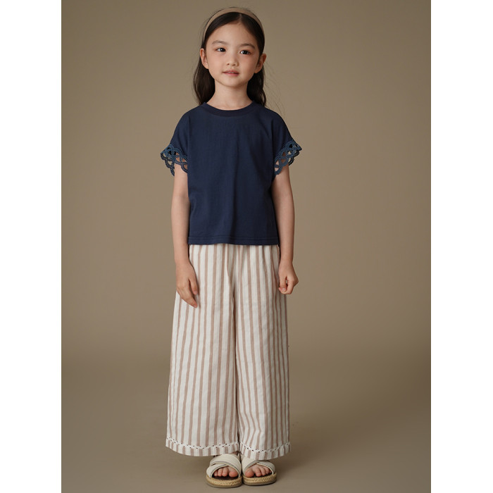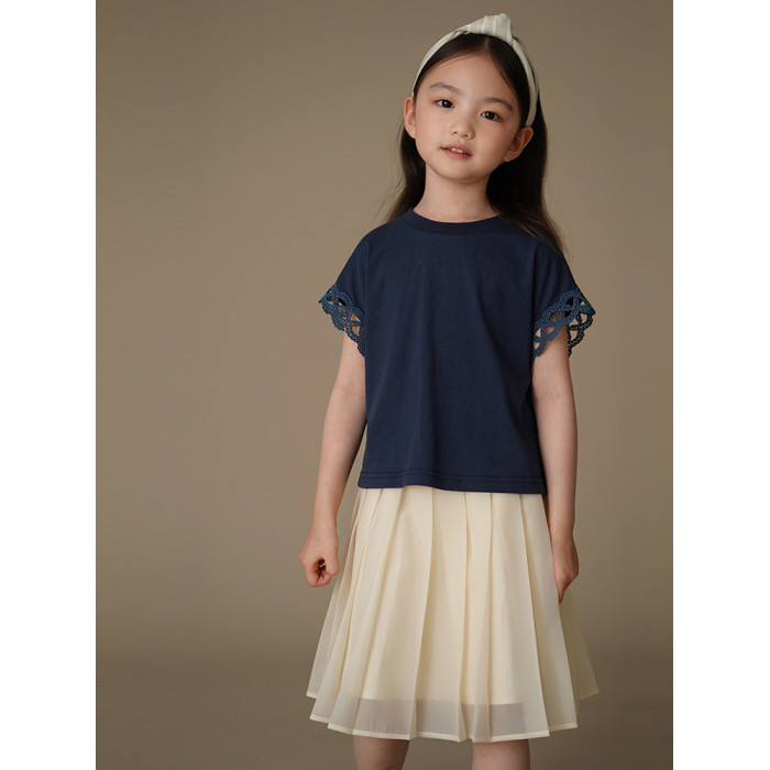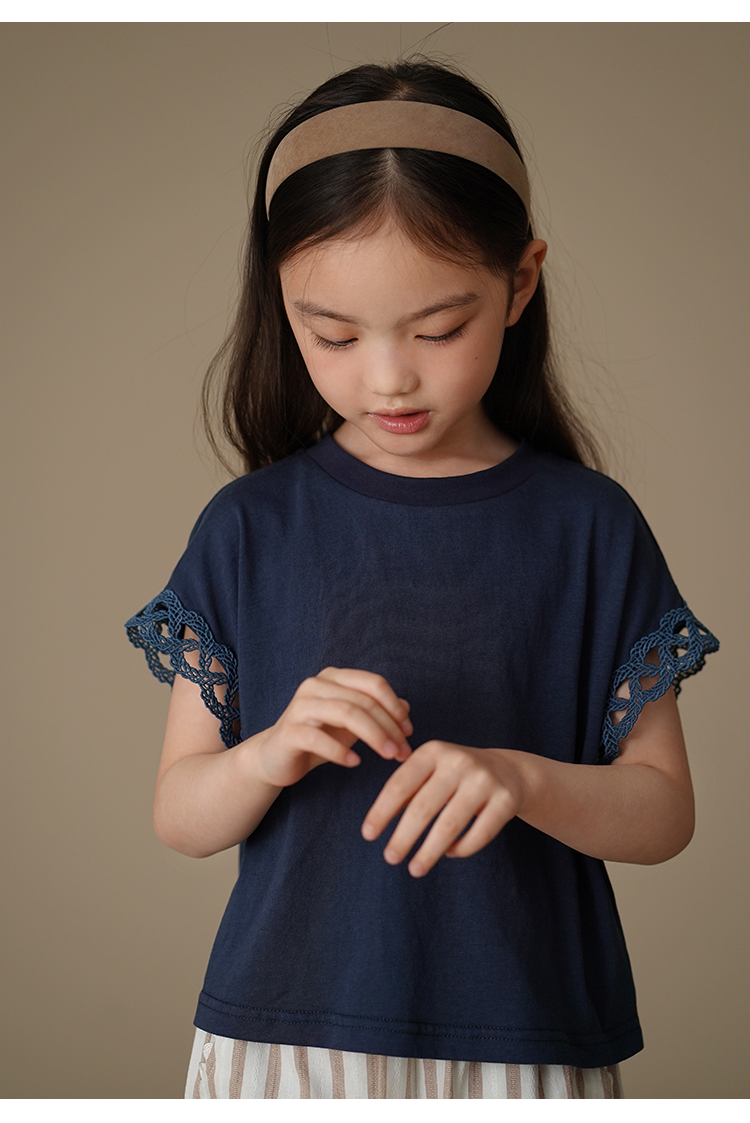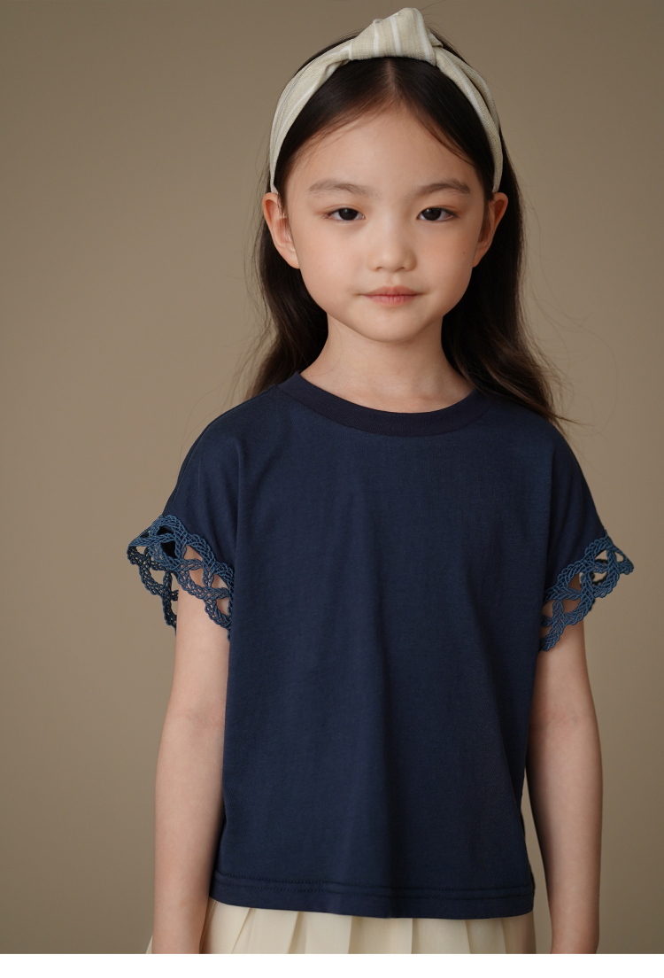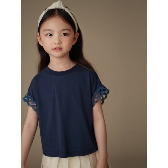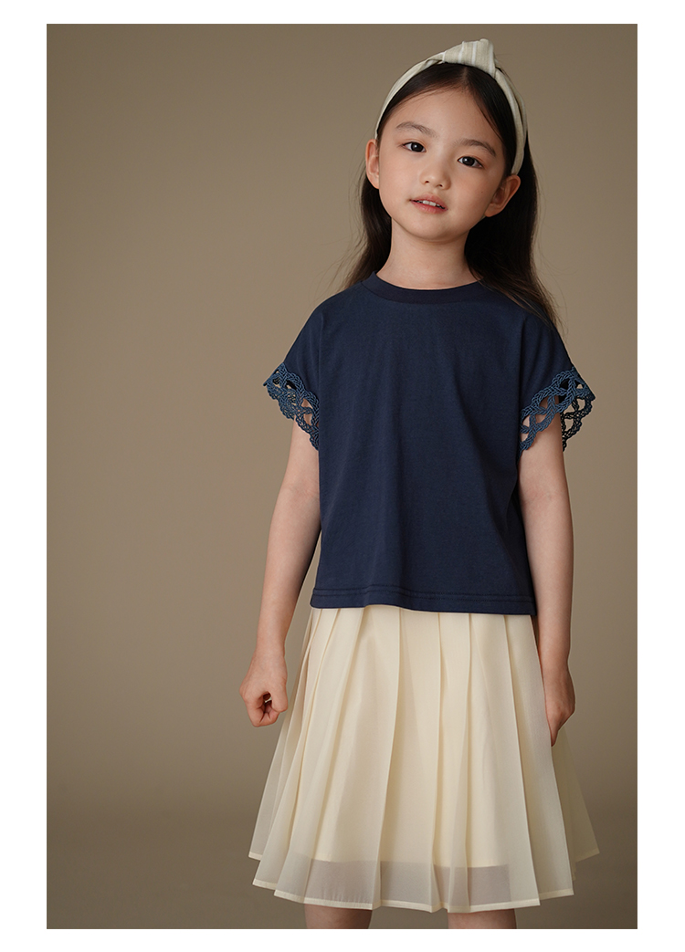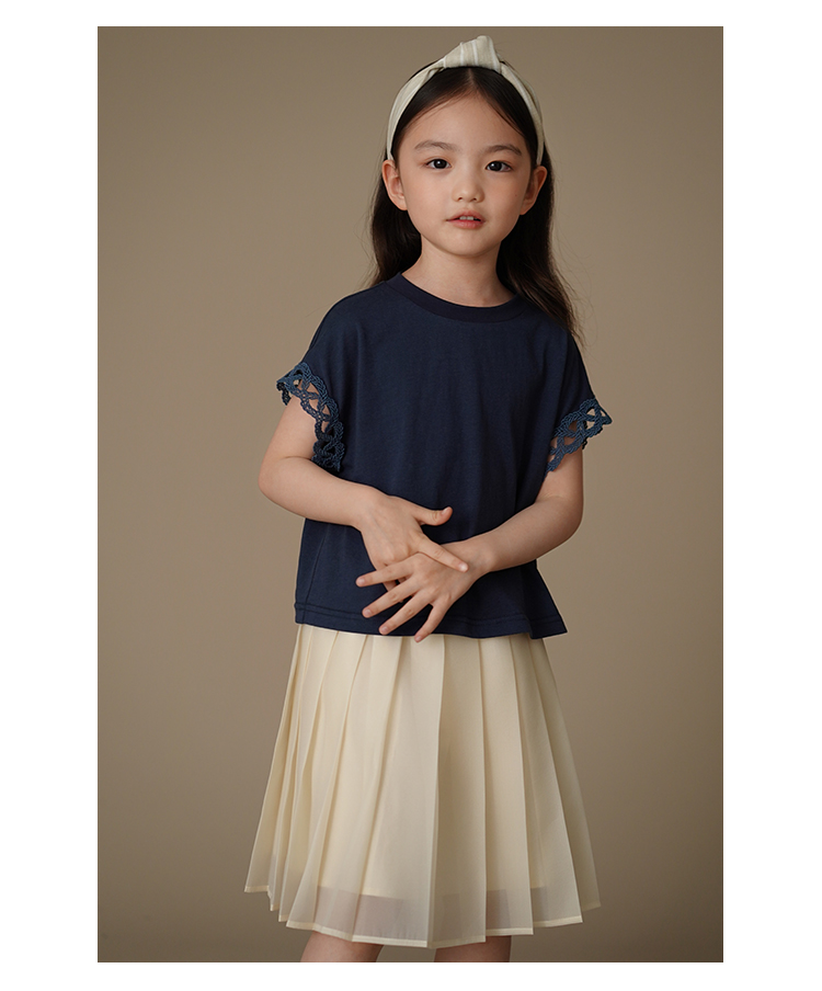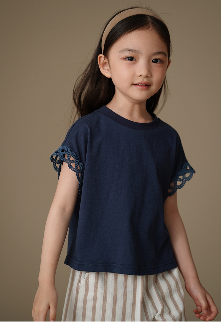 哈齒童裝夏季兒童藏青上衣簡約設計感短袖T恤女童夏裝新款中大童