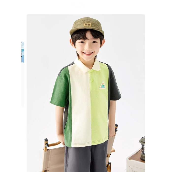 安哼安哼[涼感防蚊]mini童裝男童中大童POLO衫兒童拼色翻領短袖T