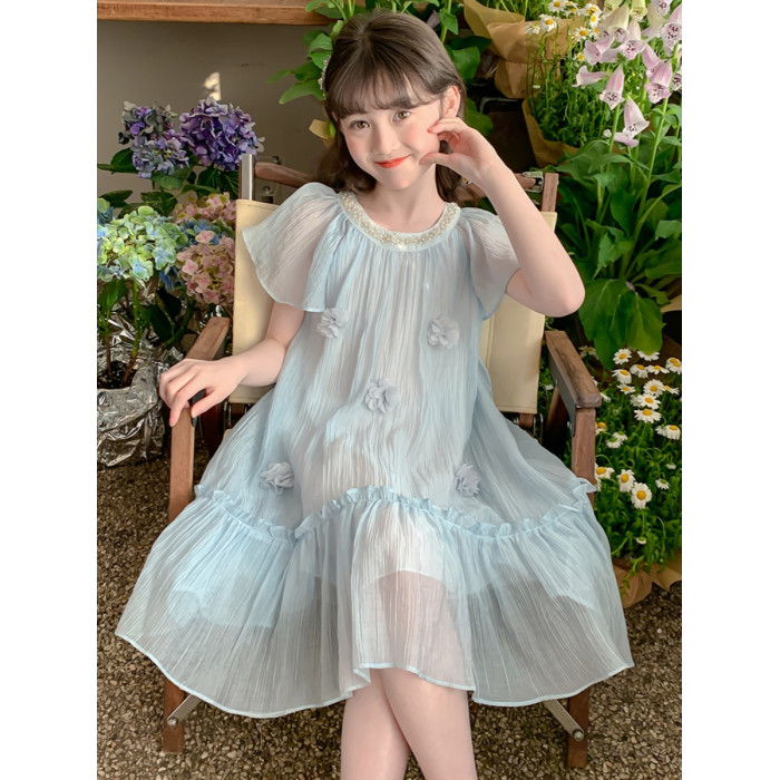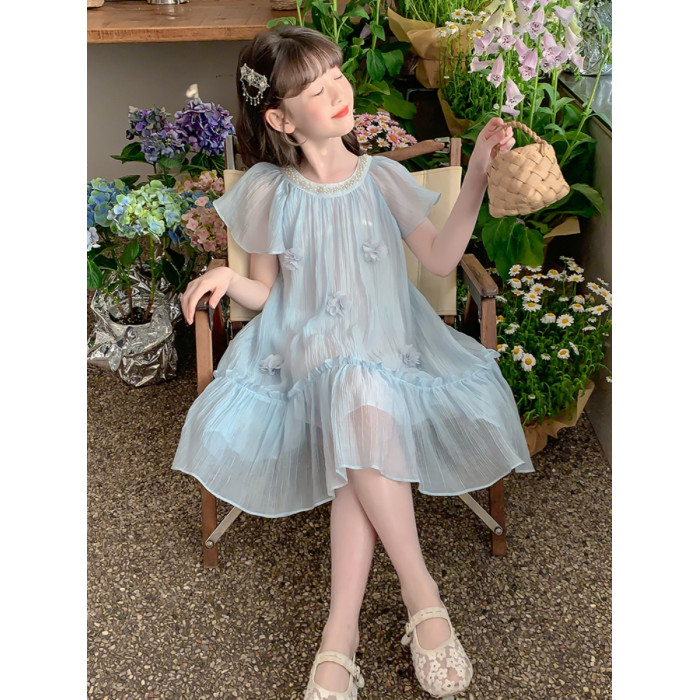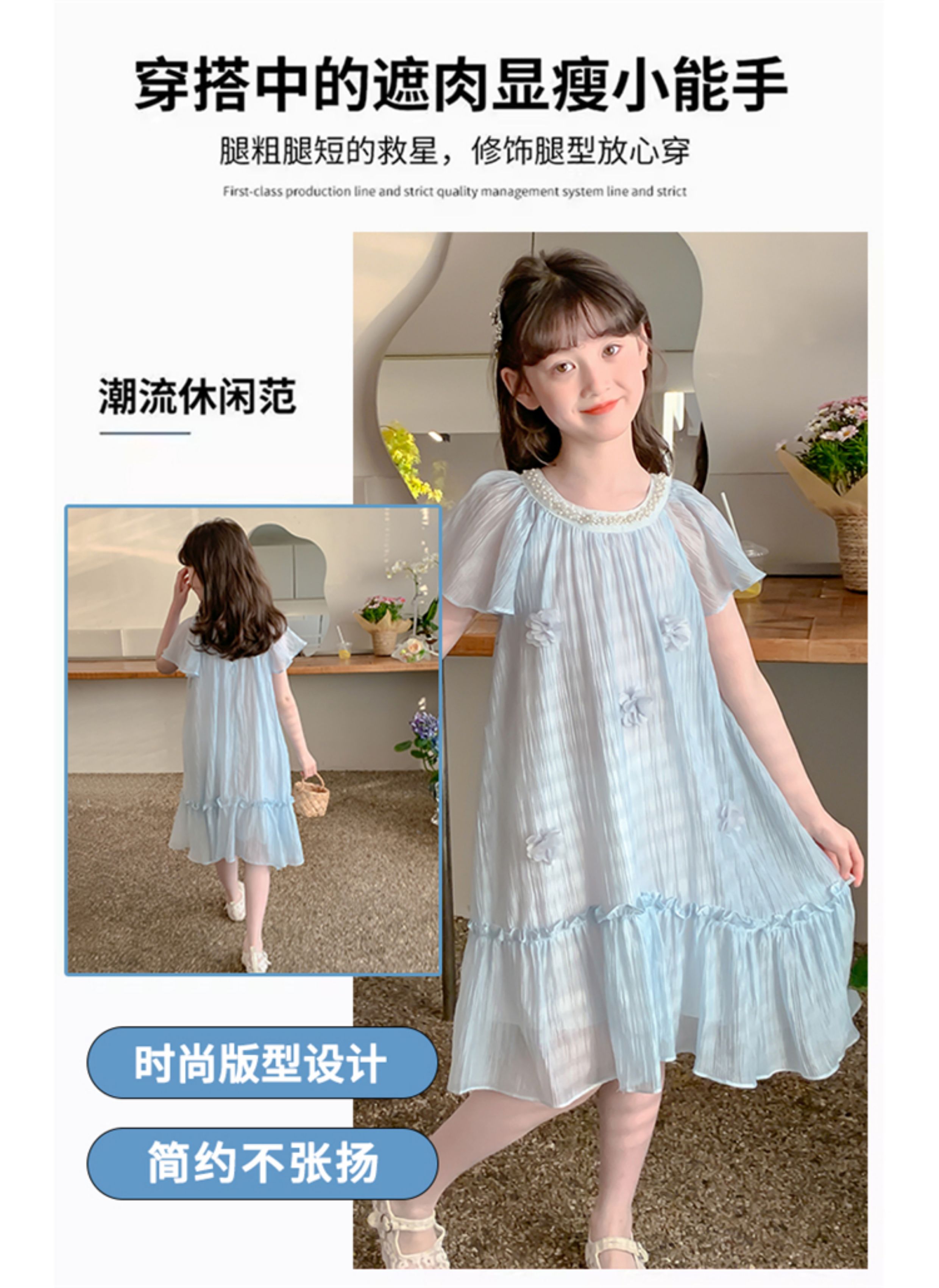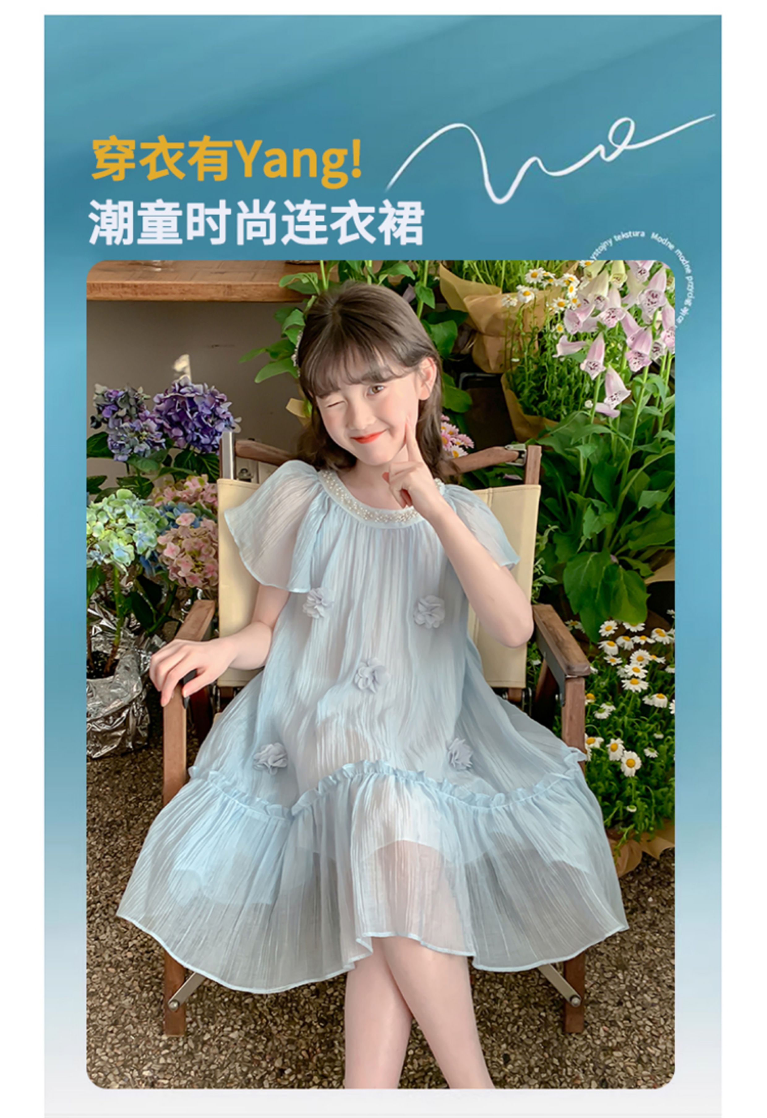 英國Next Svip藍色裙子女童連衣裙夏季薄款2025新款超好看裙子女