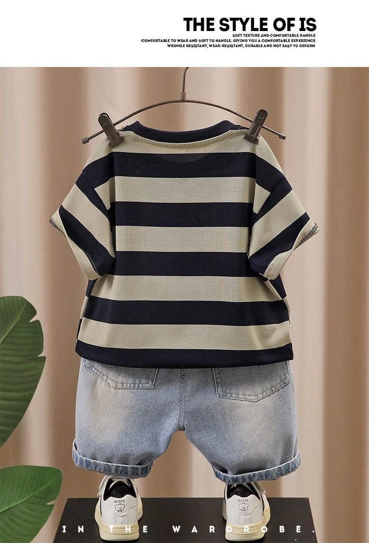 安哼安哼男童夏裝套裝2025新款兒童裝痞帥氣小童洋氣男孩條紋衣服