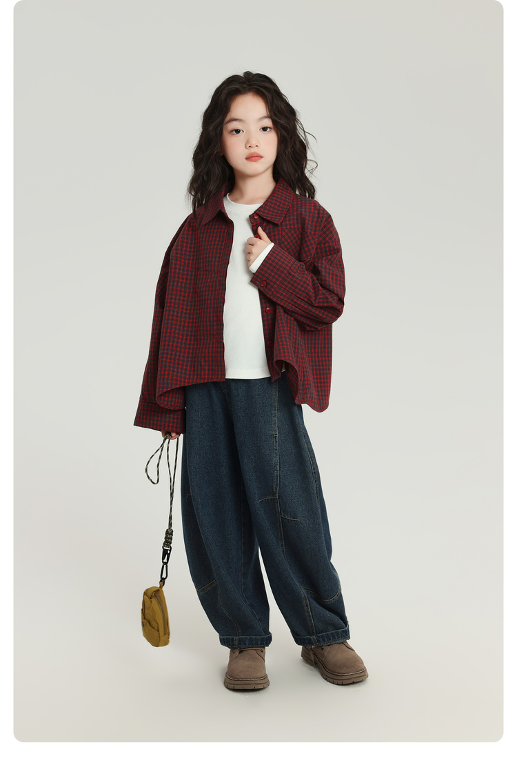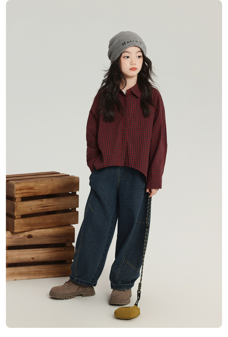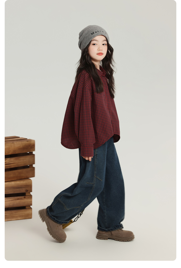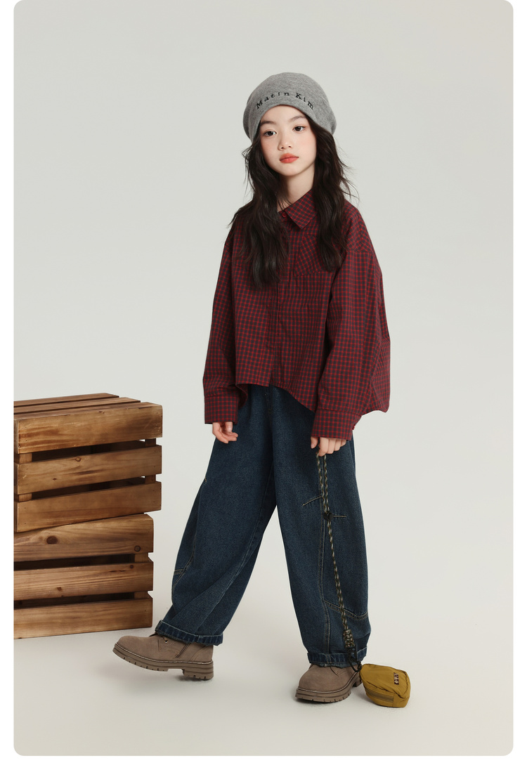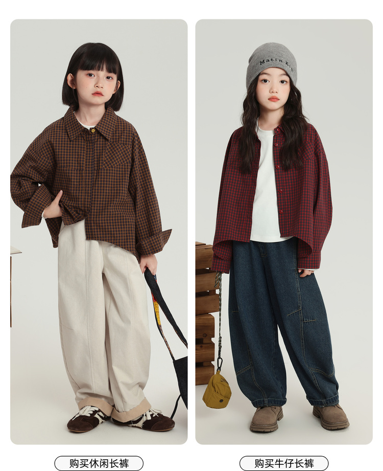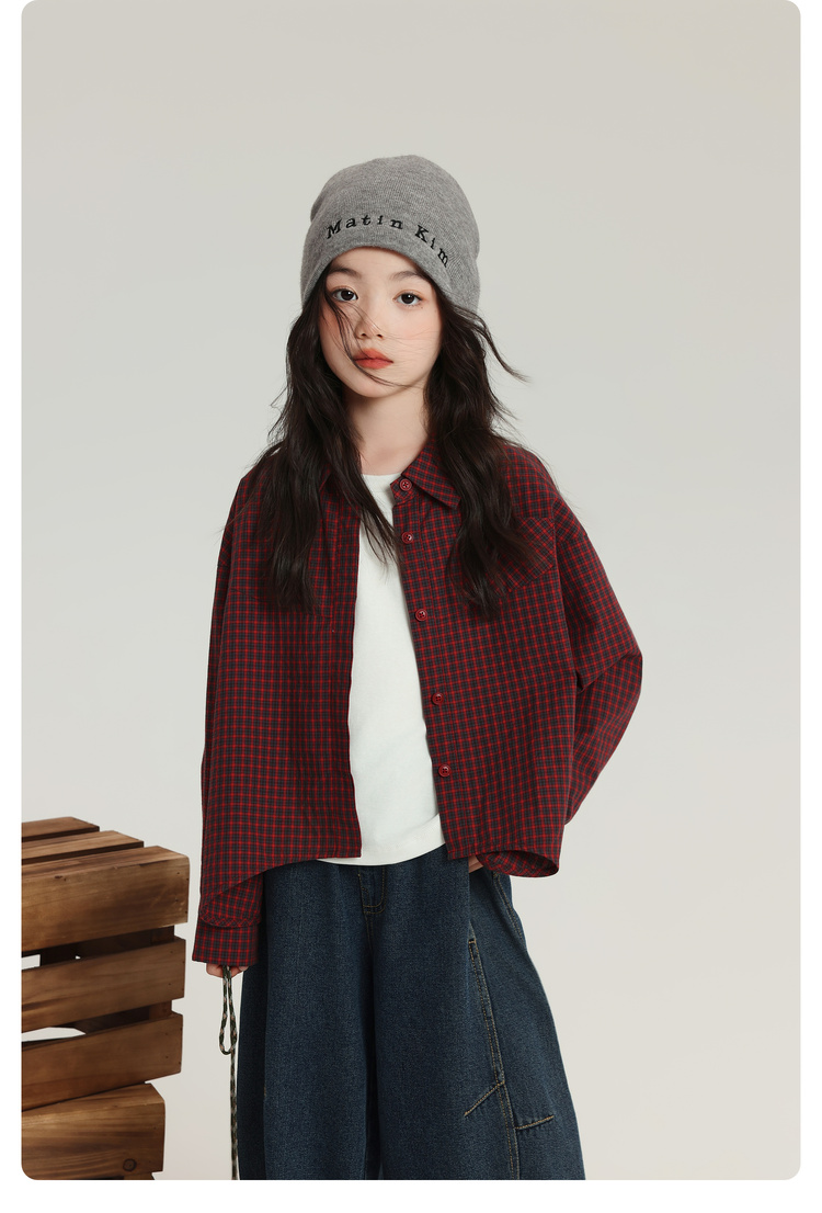 布丁哈魯春秋女童韓系外套2025秋裝新款兒童洋氣紅色格紋襯衫