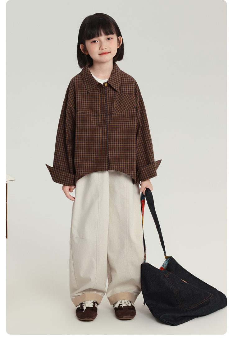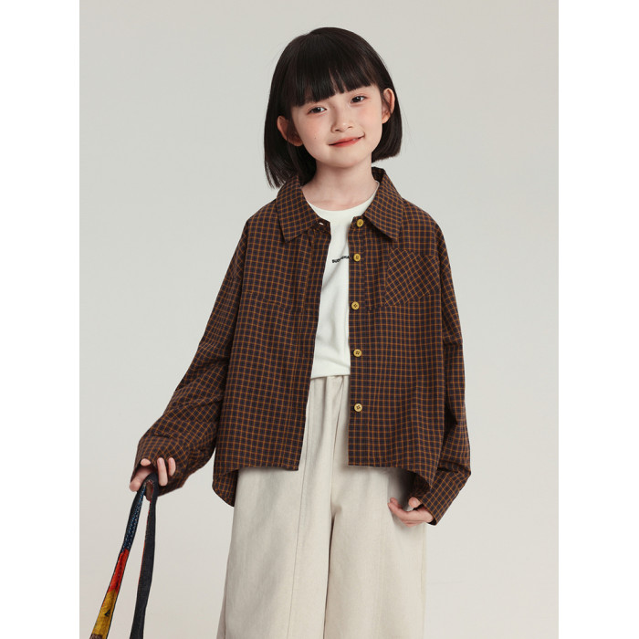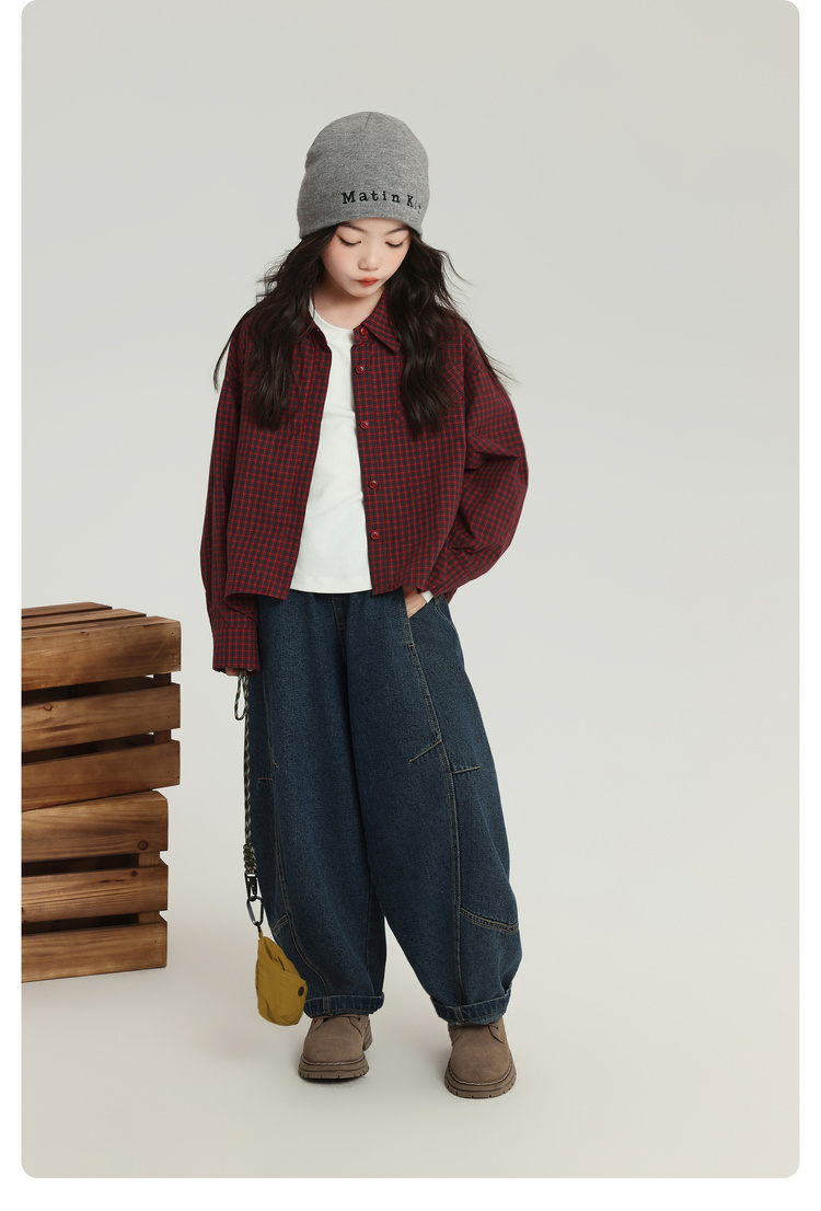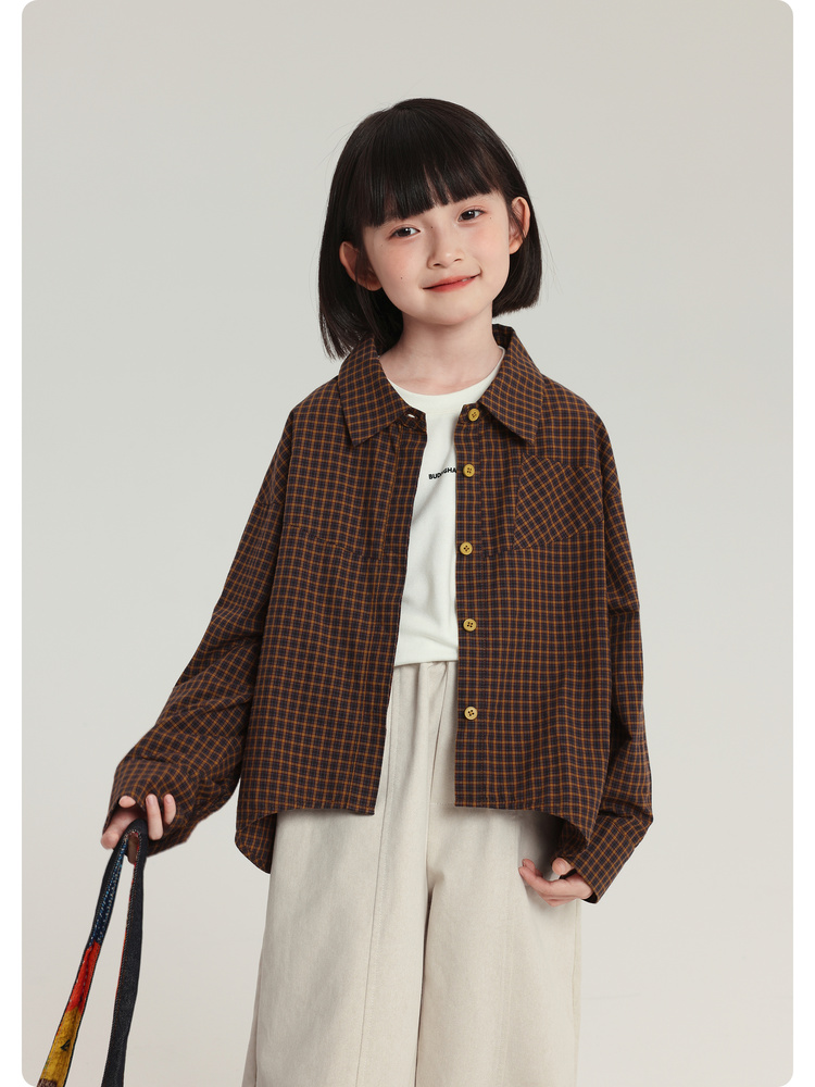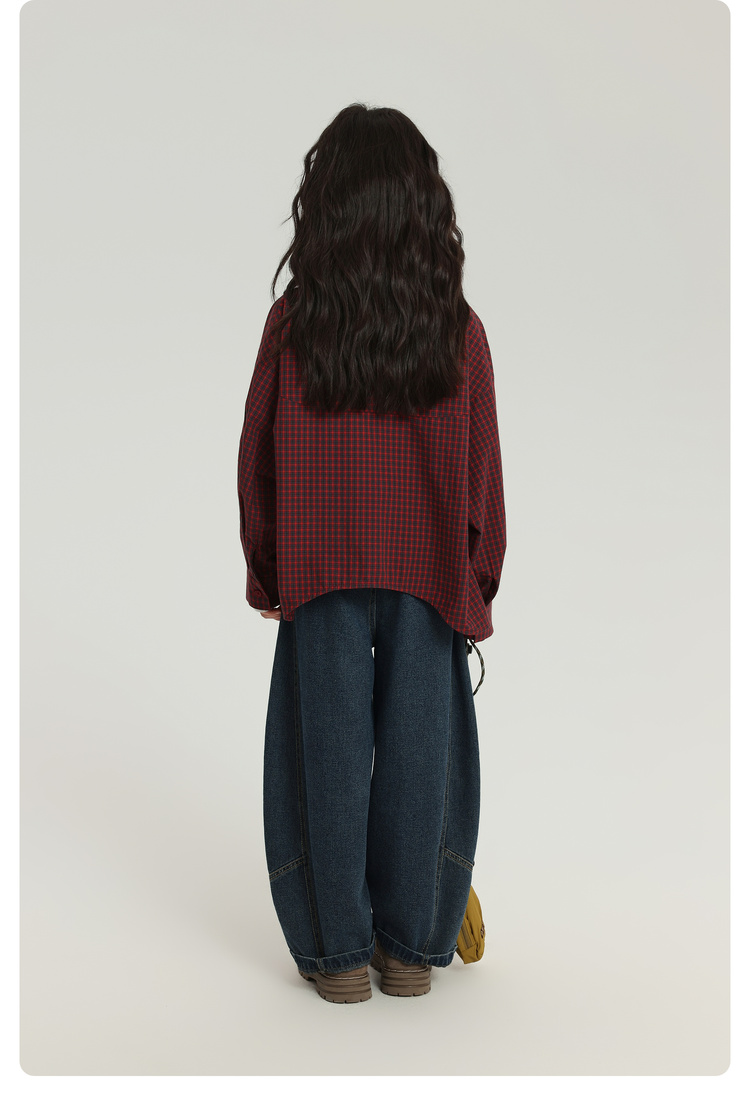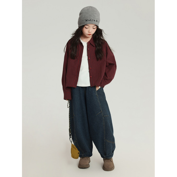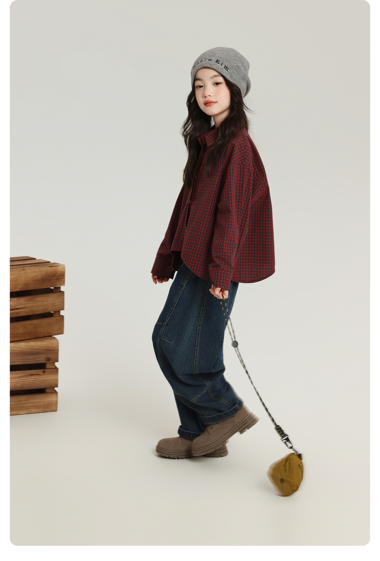 布丁哈魯春秋女童韓系外套2025秋裝新款兒童洋氣紅色格紋襯衫